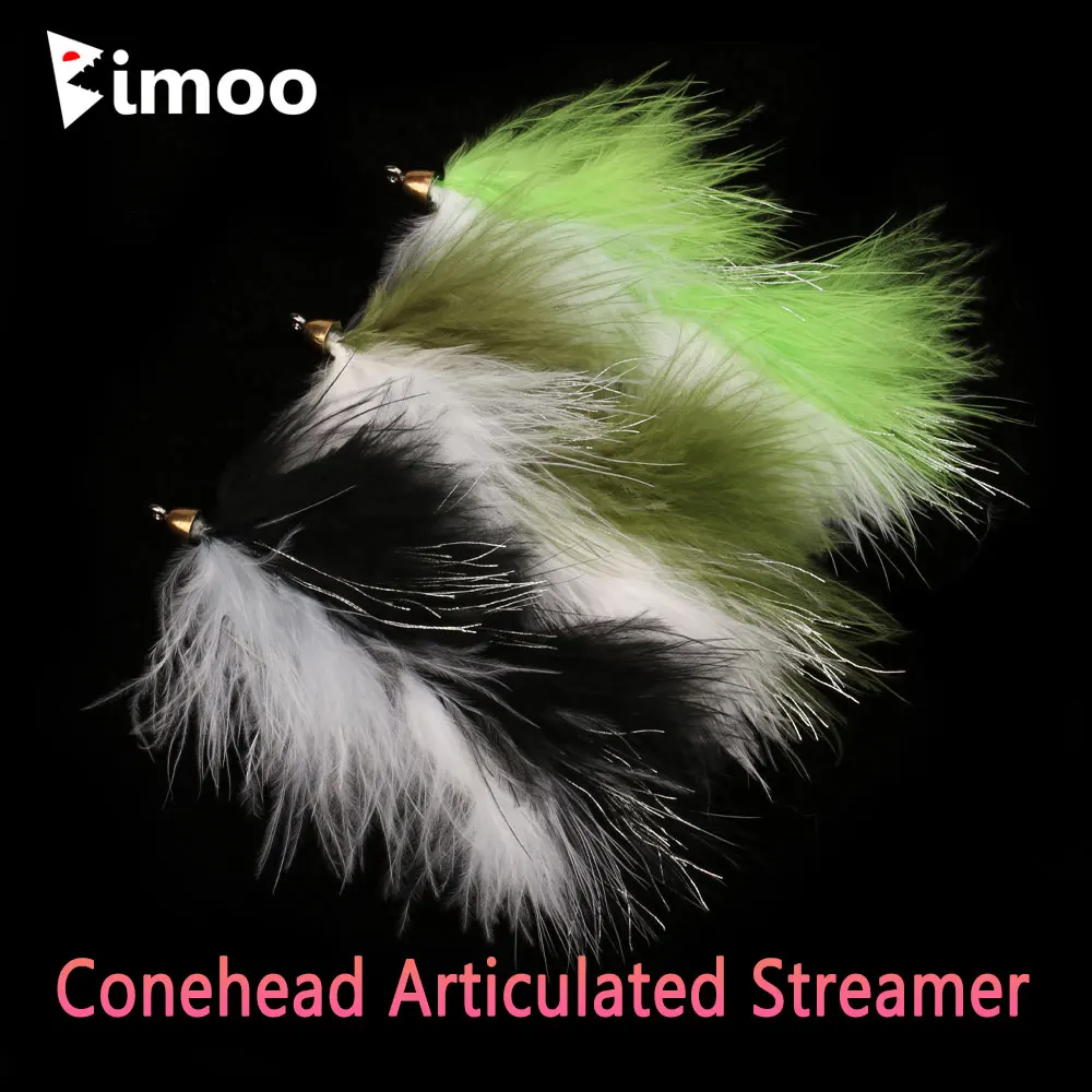 Bimoo, 1 pieza, cabeza de cono de latón, serpentina articulada para peces, espina, Mosca, gran juego, peces, pesca de agua salada, Lucio, lubina, trucha, Señuelos de Pesca