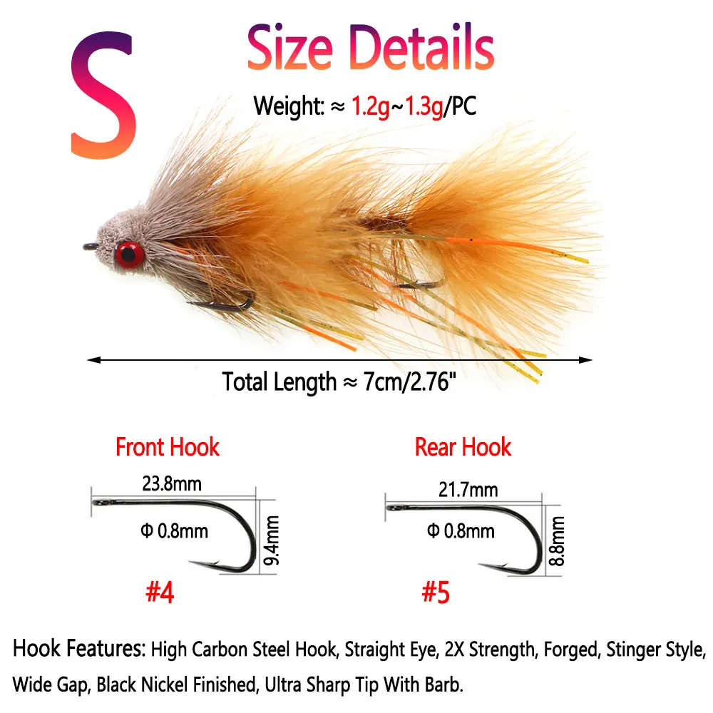 * Tenga en cuenta que, debido a que está atado a mano, el tamaño de cada mosca no será exactamente el mismo.