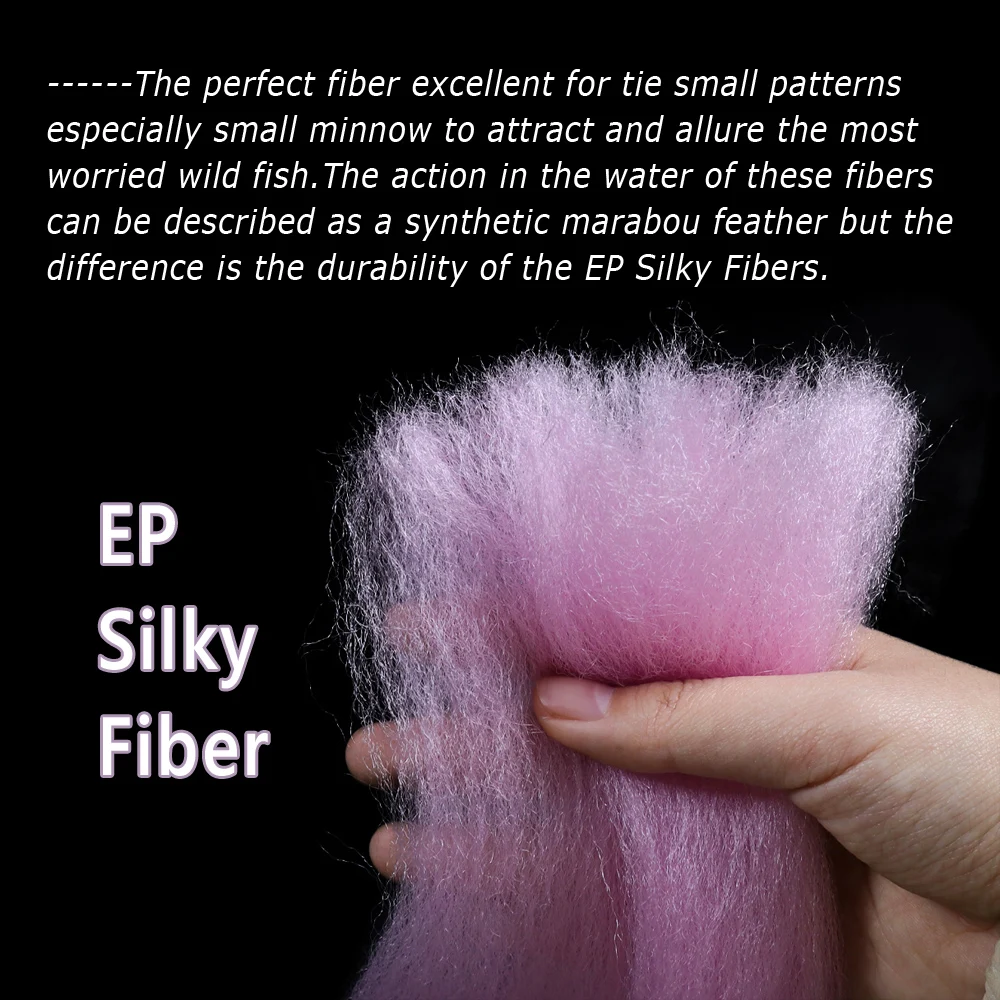 ------ La fibra perfecta excelente para atar patrones pequeños, especialmente pececillos pequeños para atraer y atraer a los peces salvajes más preocupados. La acción en el agua de estas fibras se puede describir como una pluma de marabú sintética, pero la diferencia es La durabilidad de las fibras sedosas EP.