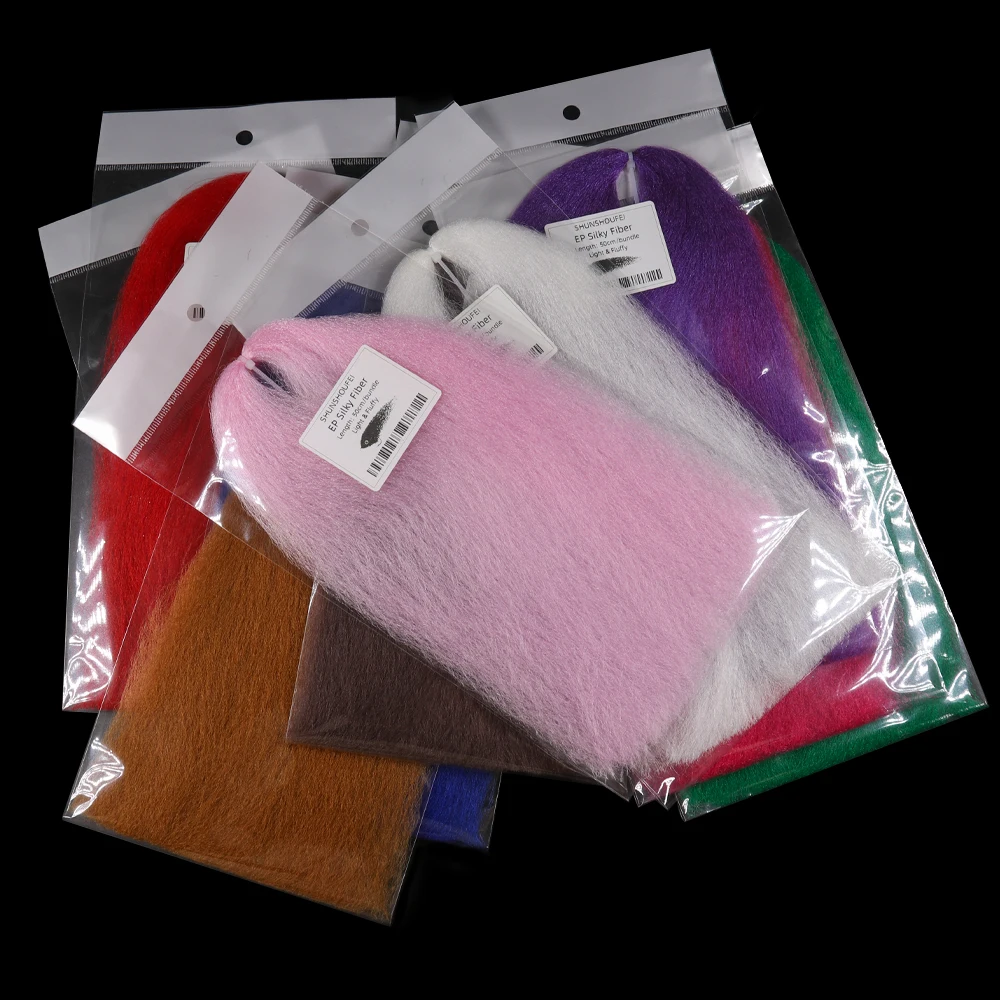 Las fibras sedosas EP son finas y suaves para permitir que las moscas respiren y pulsen bajo el agua. Son perfectamente adecuados para serpentinas pequeñas (1/2 ″-3 ″ de largo). Las fibras sedosas EP funcionan fantásticas para alas giratorias, postes de paracaídas y cáscaras emergentes en moscas de trucha.