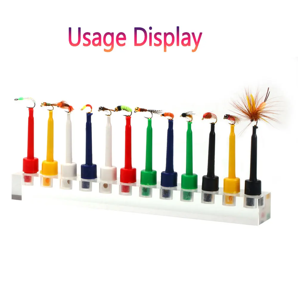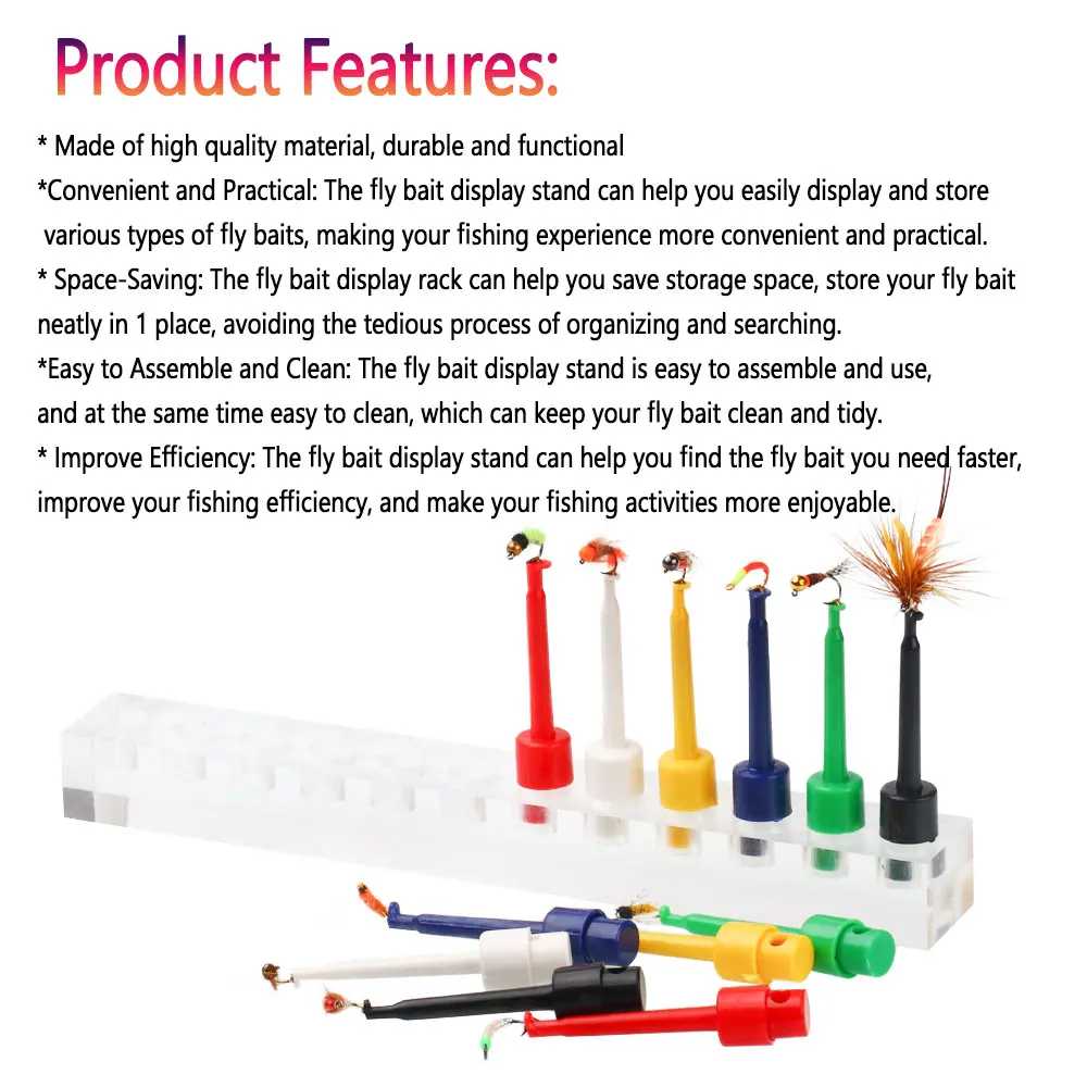 * Práctico y práctico: El soporte de exhibición de cebo para moscas puede ayudarle a mostrar y almacenar fácilmente varios tipos de cebos para moscas, haciendo que su experiencia de pesca sea más conveniente y práctica.