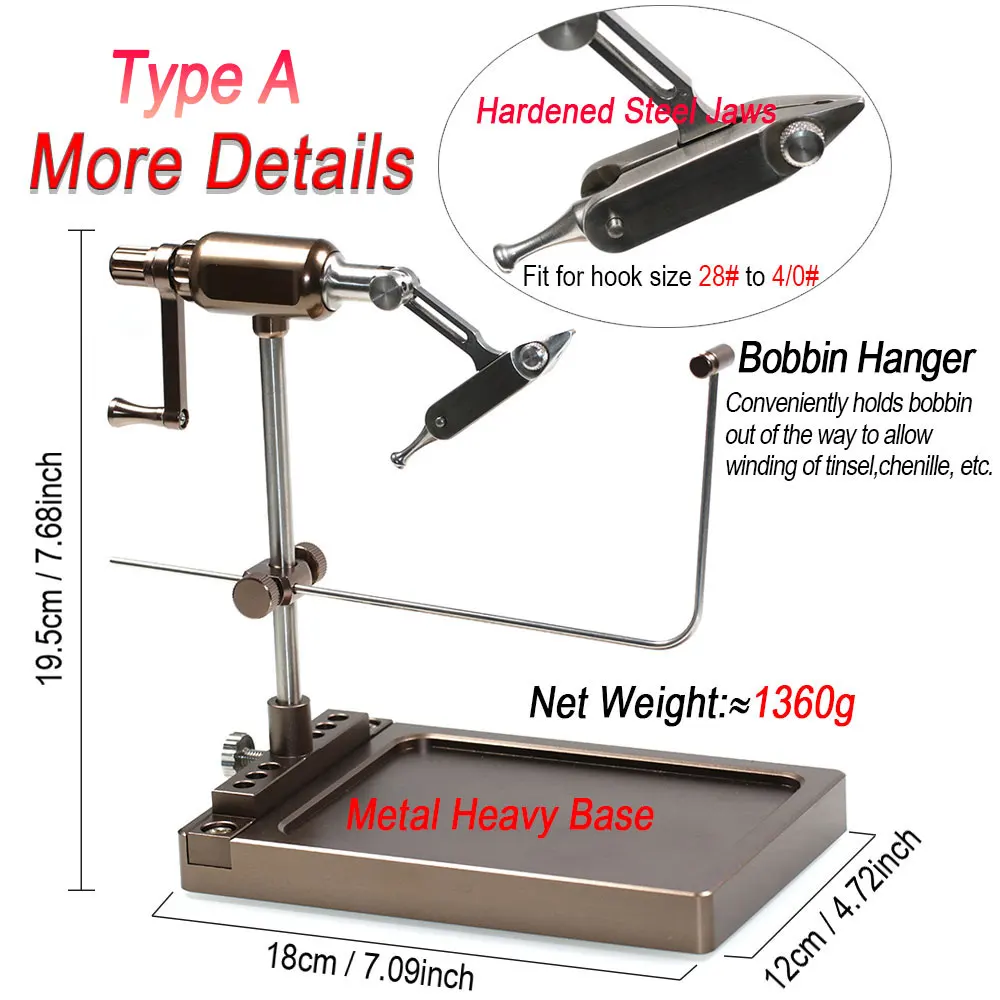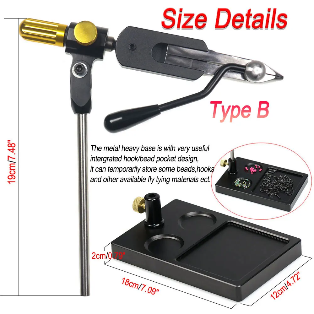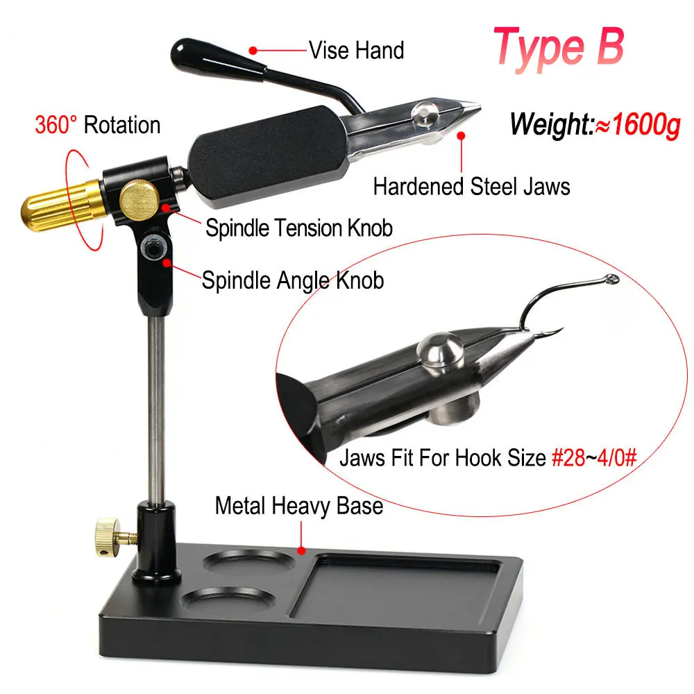 Bimoo-Tornillo de Banco de atado de moscas con rotación de 360 °, mordazas endurecidas, herramientas para hacer Señuelos de Pesca, soporte de bobina, enhebrador, tijeras de acabado de látigo