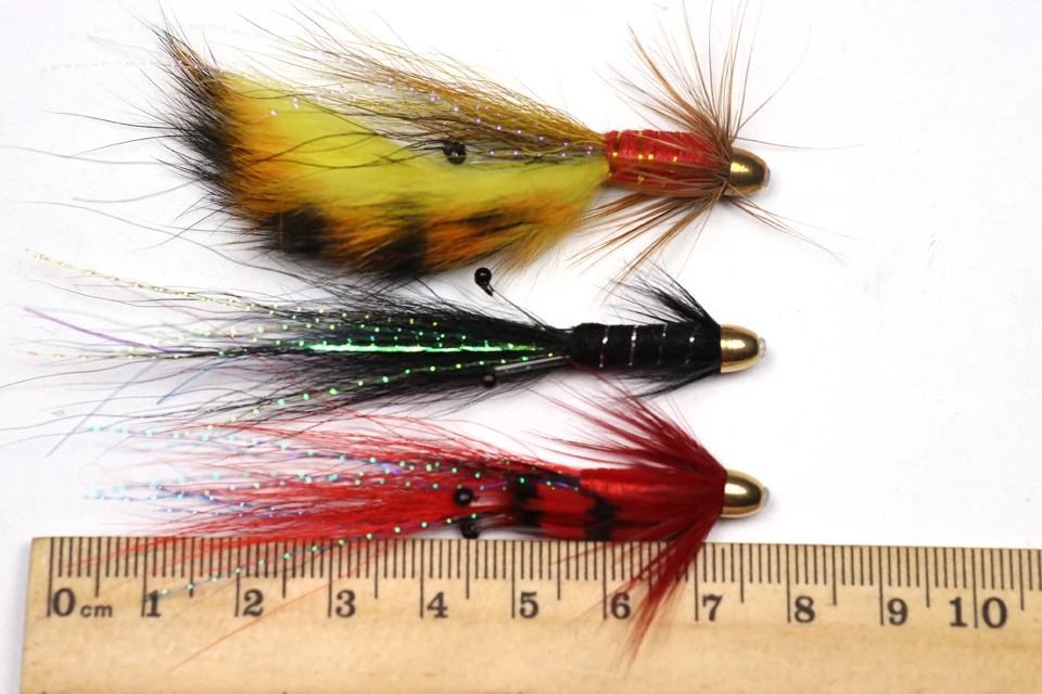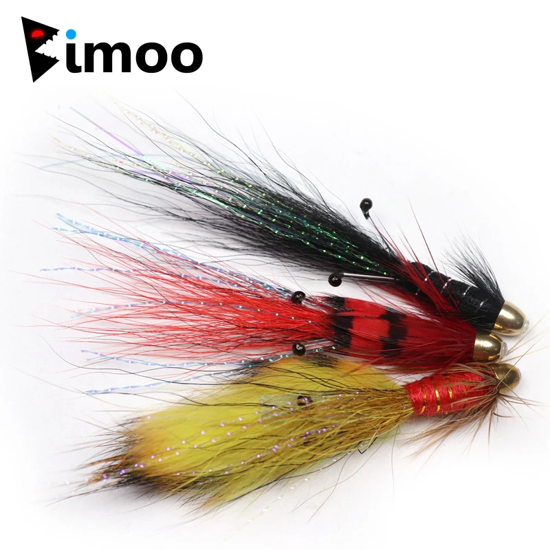 Bimoo-Tubo de salmón para moscas y triples, Conehead Fire Tiger, Negro, Rojo, Francis Snaelda, 4 unidades