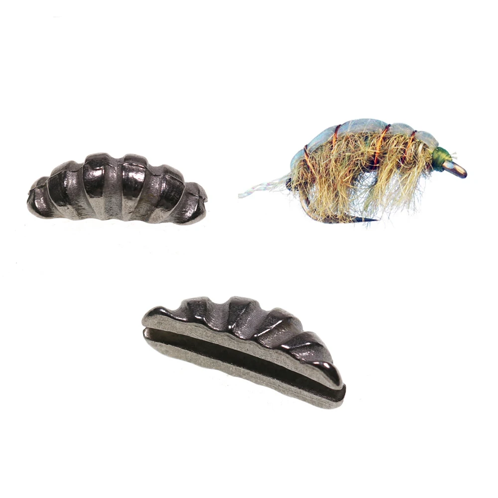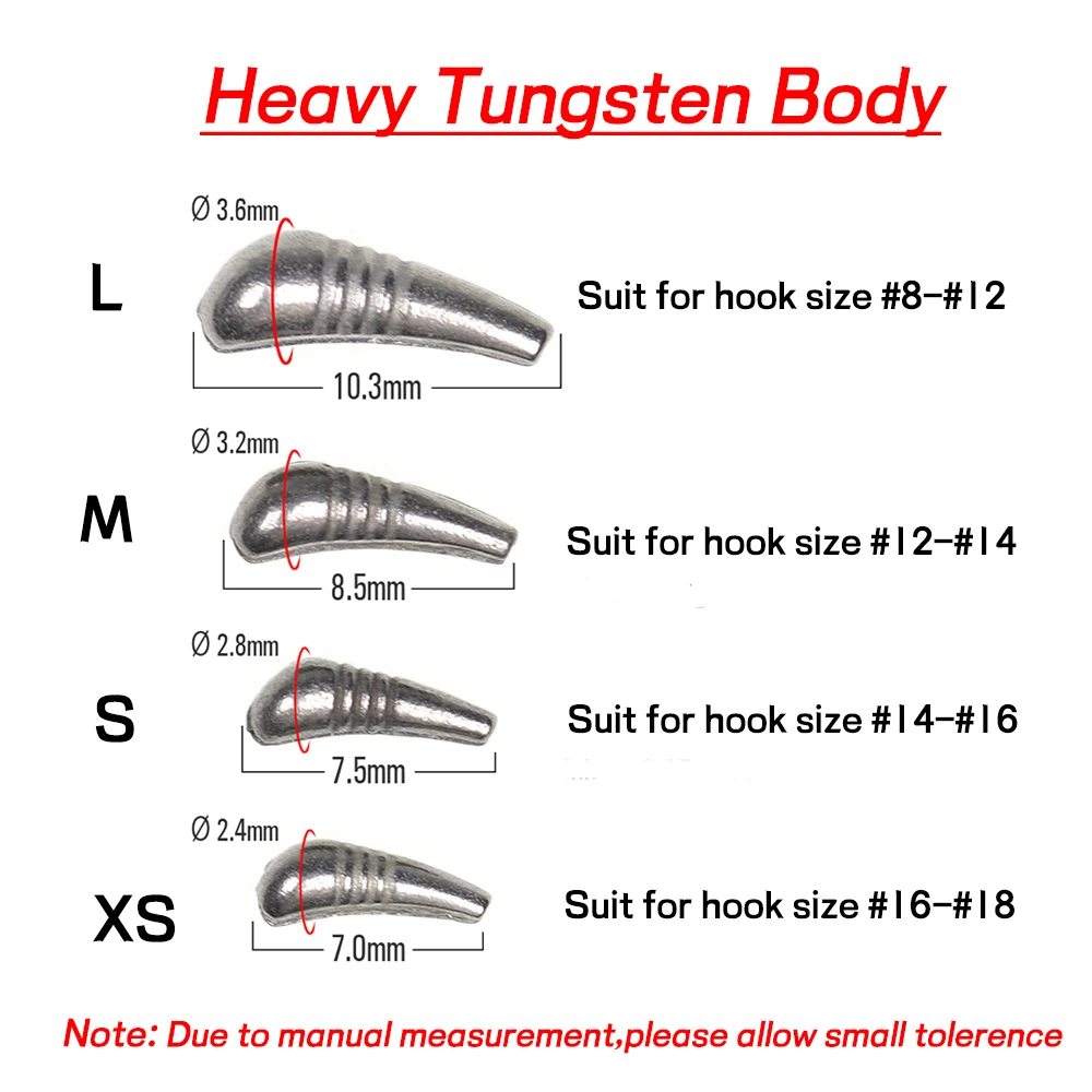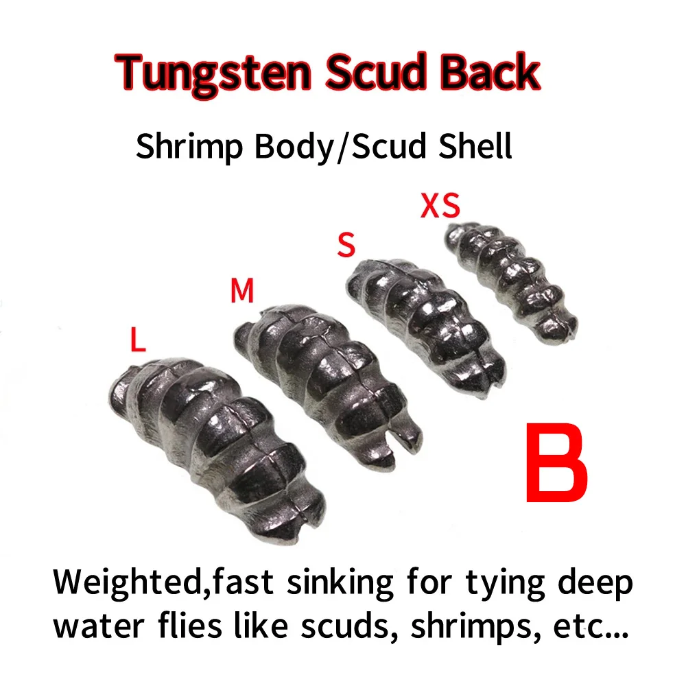 Bimoo12PCS XS S M L cuerpo de tungsteno pesado Jig Back/cuerpo de camarón/carcasa scard Material de atado de mosca de hundimiento rápido Color crudo 2 modelos