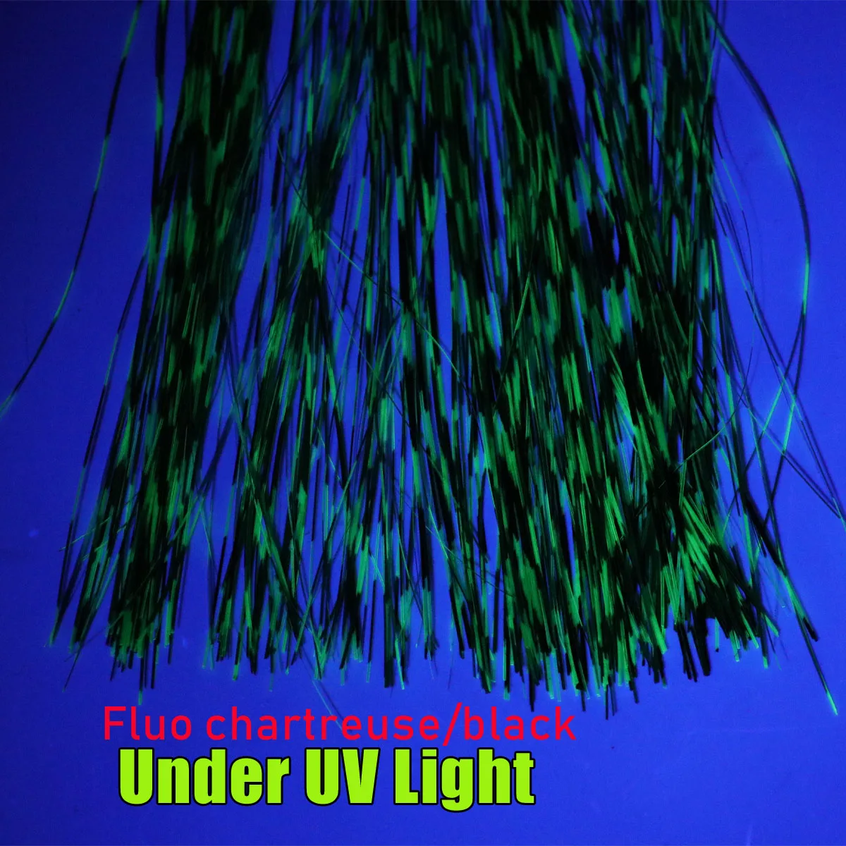 -Una excelente alternativa sintética para la costosa pluma de grizzly.Un nuevo material flashabou con barrer negro para usar como sustituto del hackle de sillín en el estilo de su intruso vuela en una versión más gruesa y amplia del Flashabou Barred Grizzly.