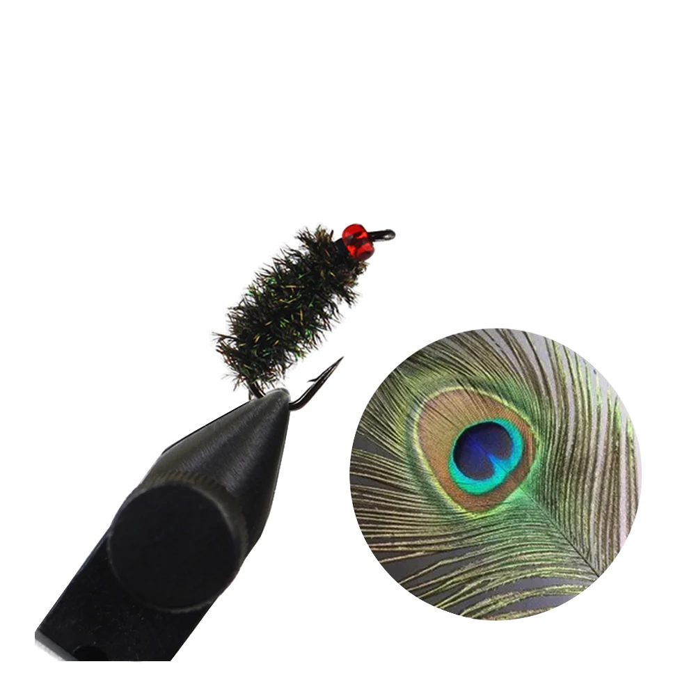 1. Hecho de plumas naturales seleccionadas, el color es brillante y se dispersará al entrar en el agua, simulando que los insectos caen al agua para atraer a las especies de peces objetivo a morder.