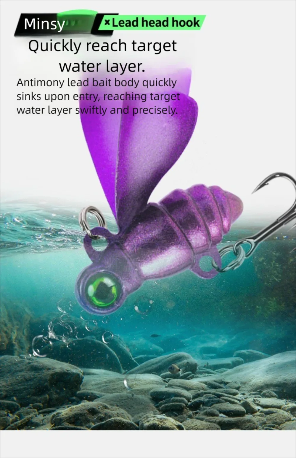 2.El cuerpo de plomo se hunde inmediatamente de forma rápida y precisa para llegar a la capa de agua objetivo.