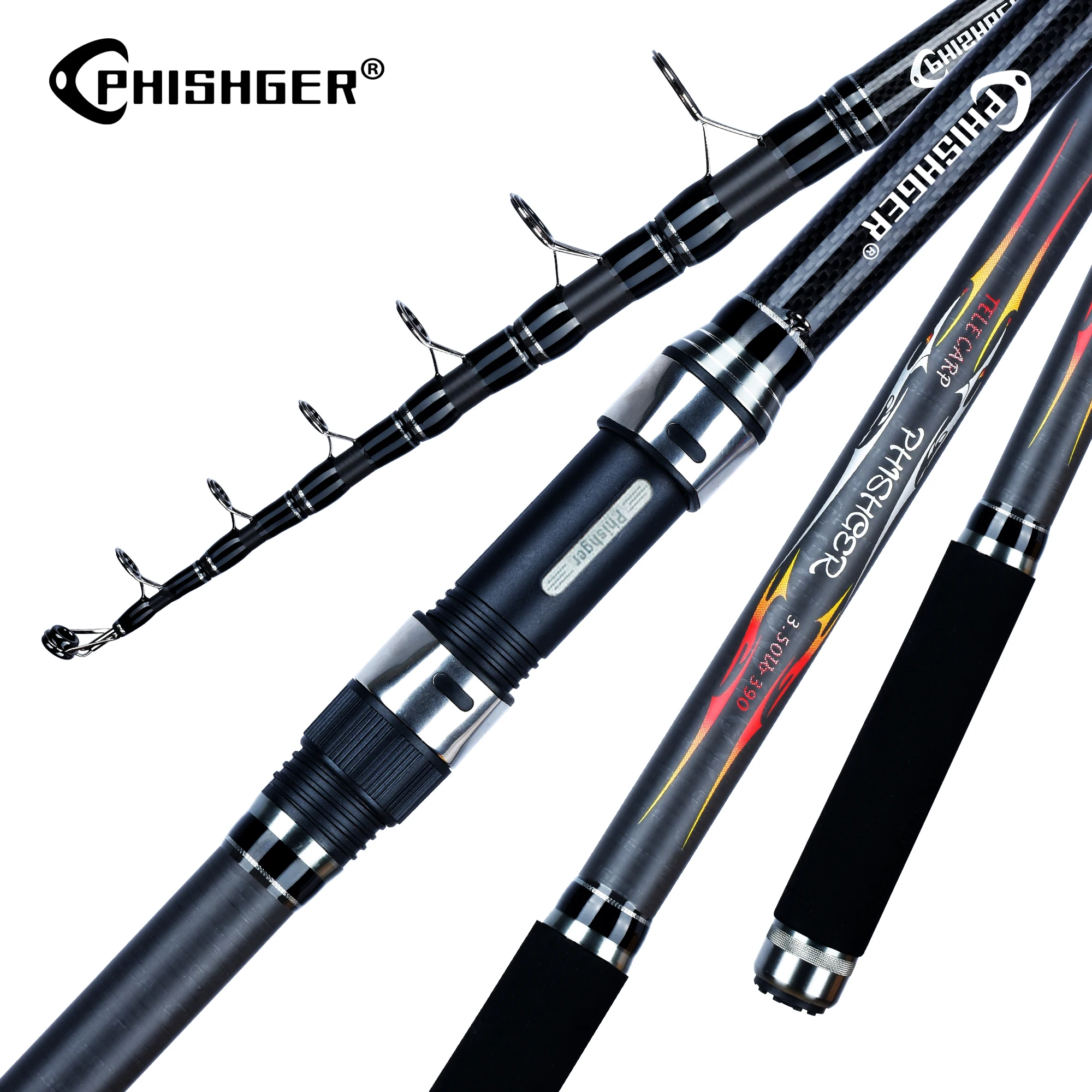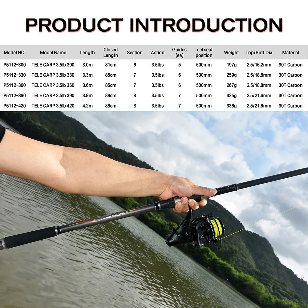 BIUTIFU-cañas de pescar telescópicas para carpa, 3,5 libras, 3,0/3,6/3,9/4,2 m, 30T, potencia de Surf giratoria de carbono, 160g, Surfcasting, Phishger, caña dura