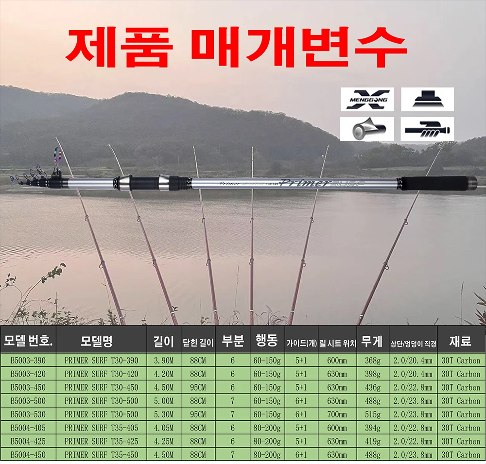 1. Telescopic surf fishing rod 5.3/5.0/4.5/4.2/4.05/3.9m.