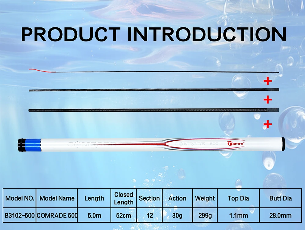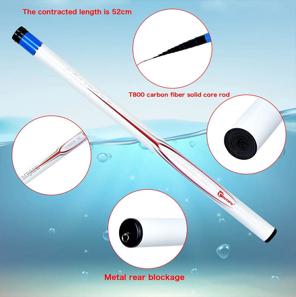 4. La punta está hecha de la varilla de núcleo sólido de fibra de carbono T800, que tiene alta sensibilidad y resistencia.