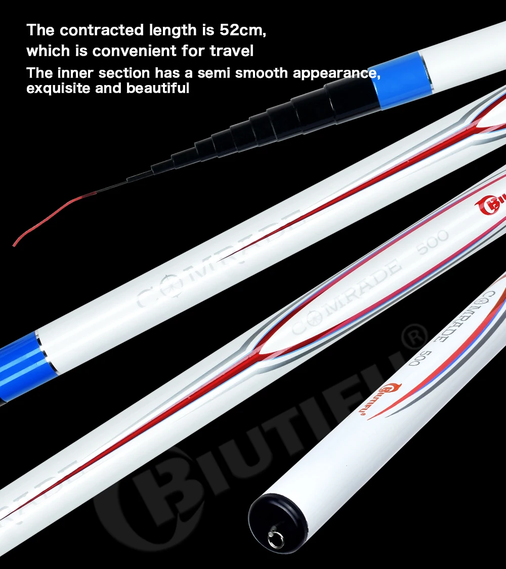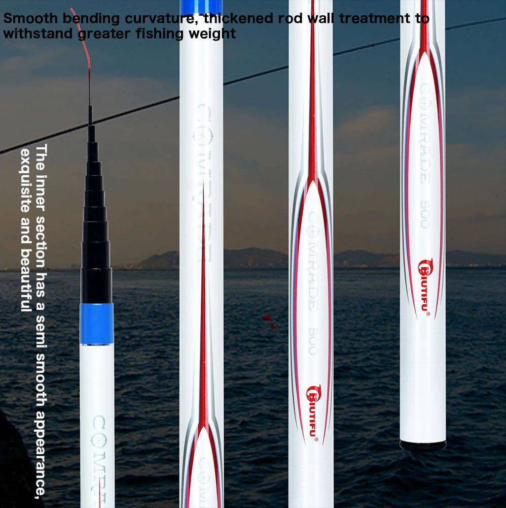 3. Curvatura de flexión suave, tratamiento de pared de caña engrosada para soportar un mayor peso de pesca.