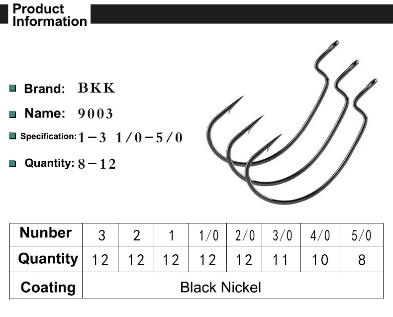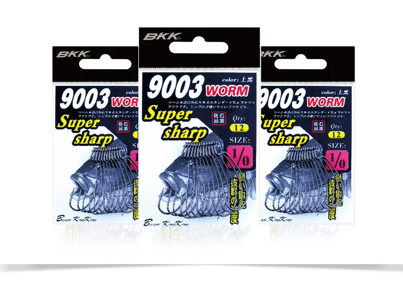 BKK serie 9003, 8-12 unids/pack, anzuelos desplazados de Gape ancho, anzuelo de gusano de pesca para señuelo de gusano suave, anzuelo de pesca con manivela de carpa con púas para lubina