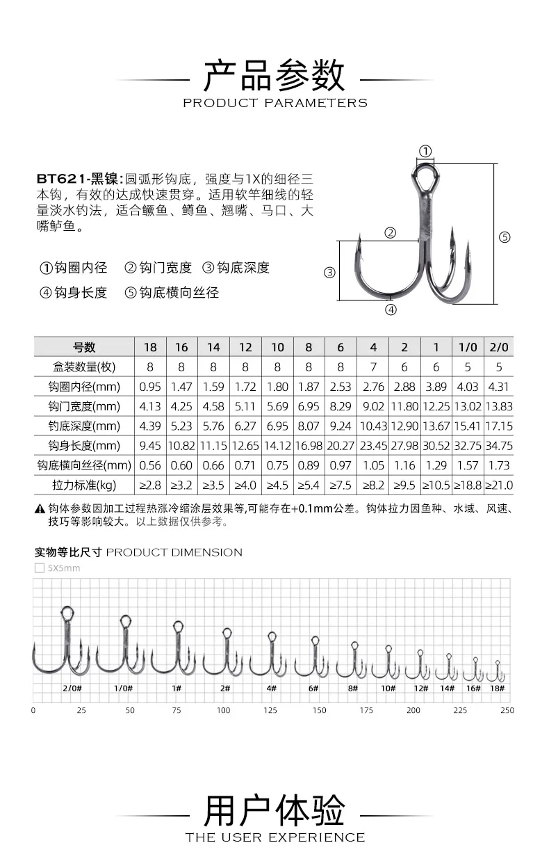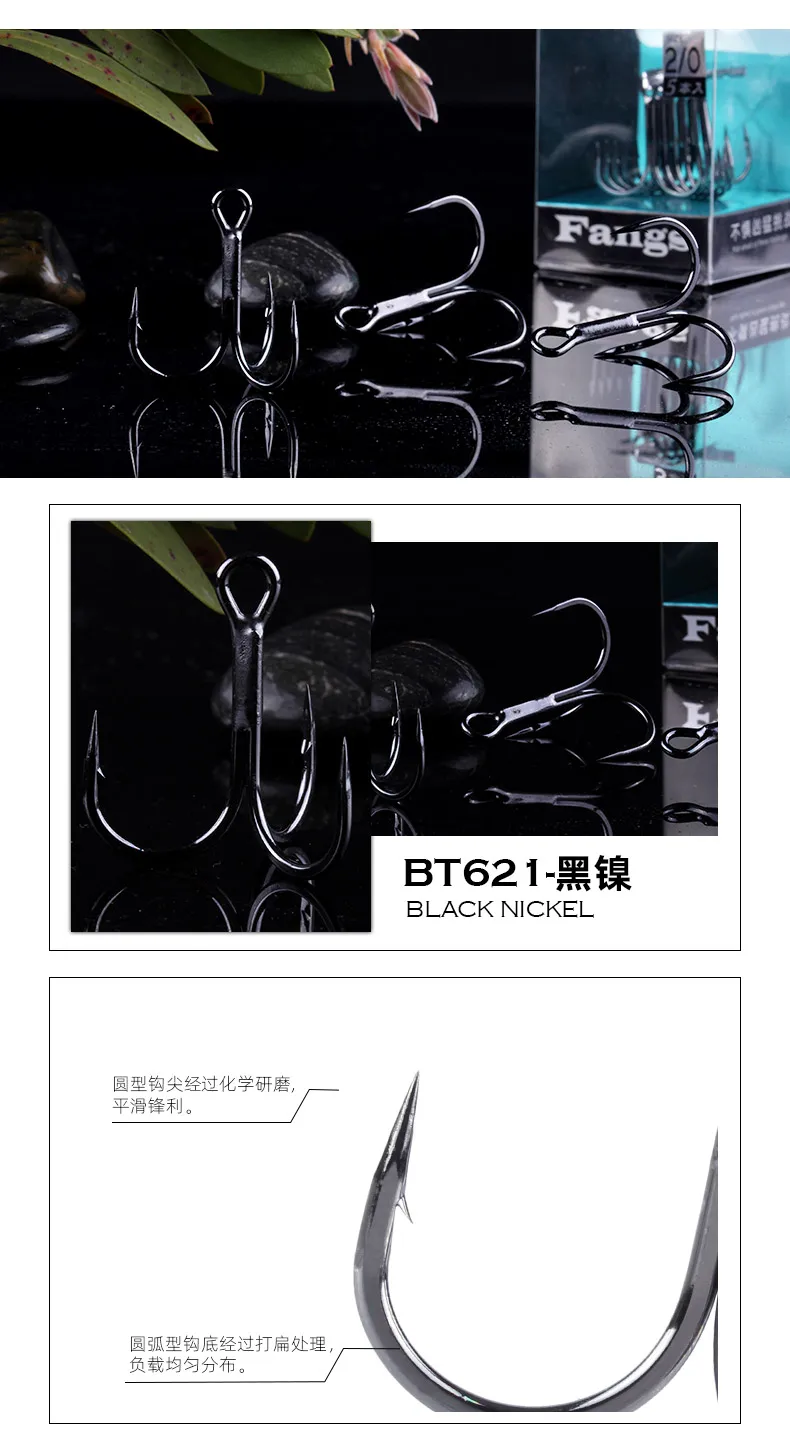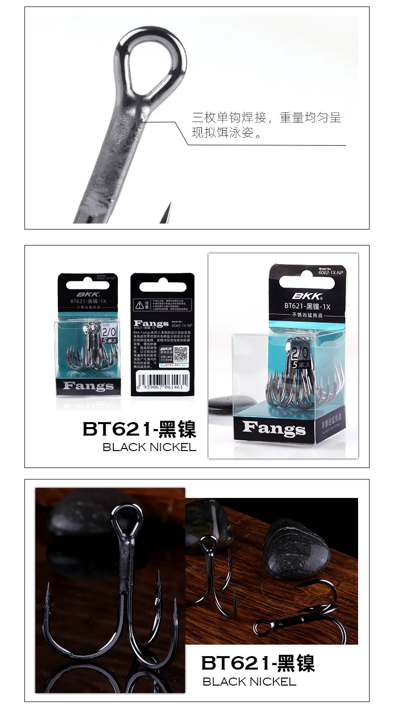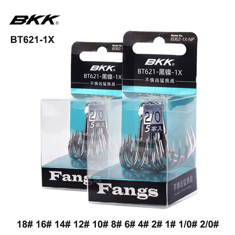 BKK BT621 1X colmillos, anzuelo triple de agua salada con tobogán súper fuerte, anzuelos de pesca con púas de carbono, anzuelos triples de pesca en el mar de níquel negro