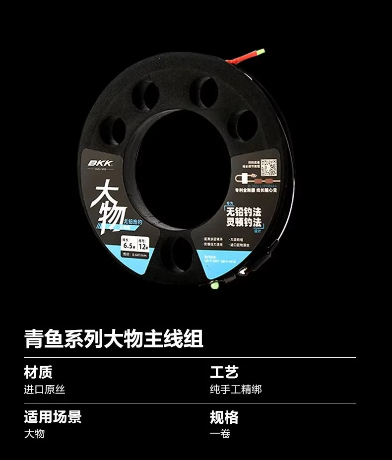 BKK-Juego de línea principal terminada para curricán Linton sin plomo, hierba grande, carpa, arenque, pozo negro, refuerzo sin nudos