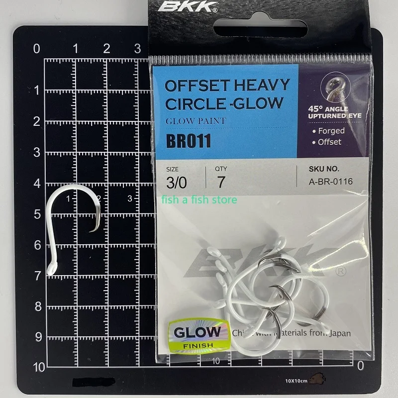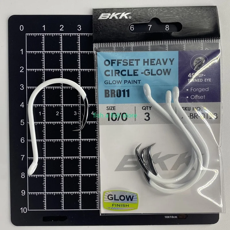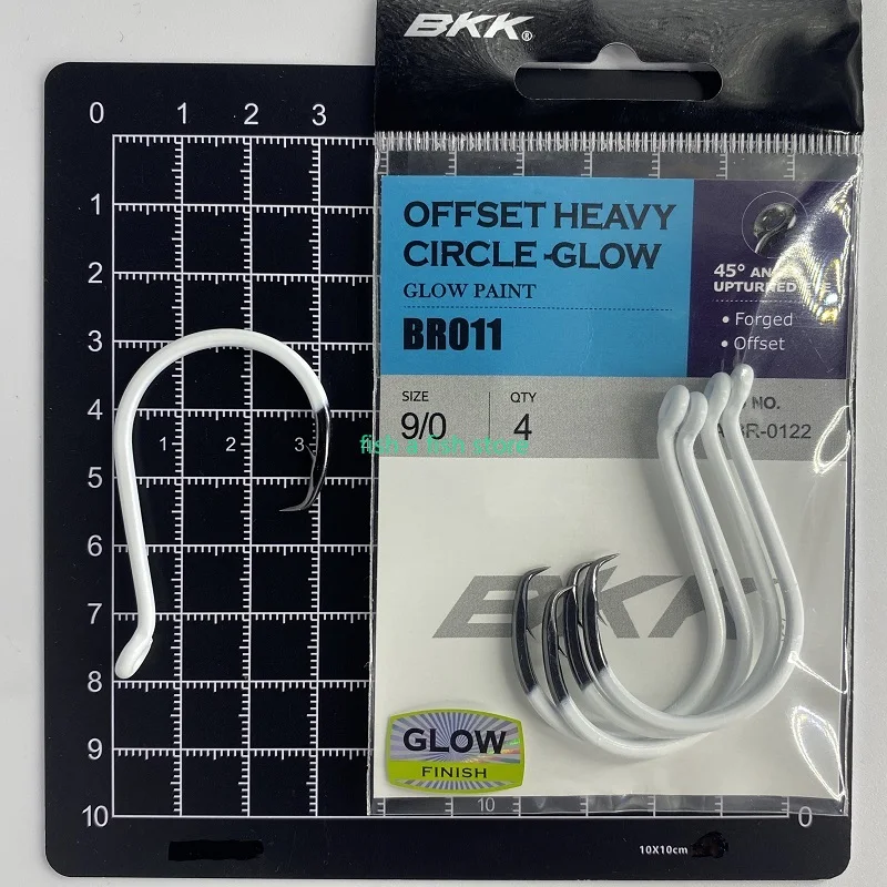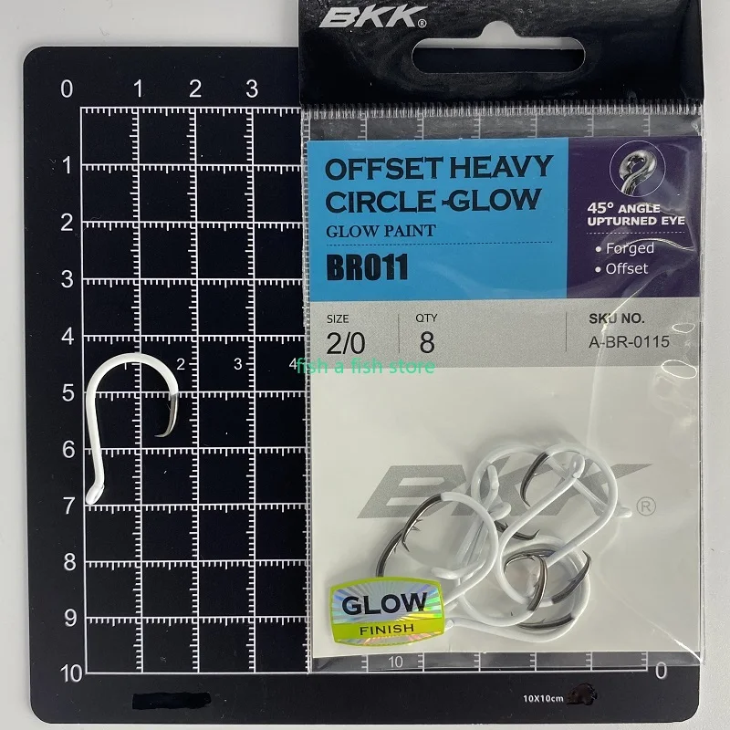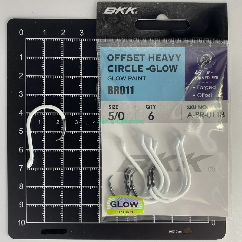 El BKK Offset Heavy Circle Glow está desarrollado específicamente para condiciones de poca luz, es decir, para pesca nocturna o aguas profundas y oscuras.
