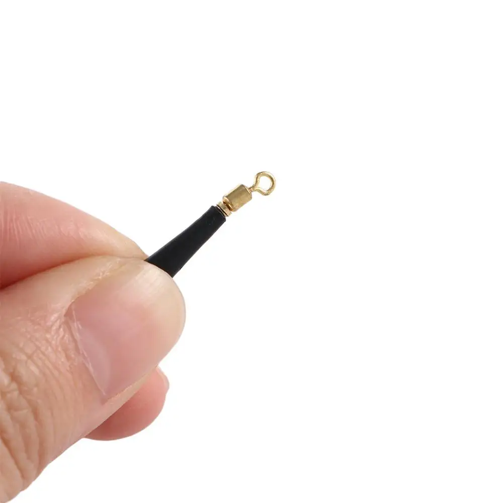 Type: fishing float Material: copper+rubber Color: black Size: S, M, L Quantity: 20pcs/Lot Package includes: 20pcs fishing floats Dimension: L: 20*1.2mm/0.79*0.05 M: 18*1mm/10.71*0.04 S: 16*0.8mm/0.66*0.03 Features: Ageing resistance, corrosion resistance The rotating float seat is made of good rubber When fishing line was broken, can stop the fishing floater to drop into the water and reduce impact to the fishhook.