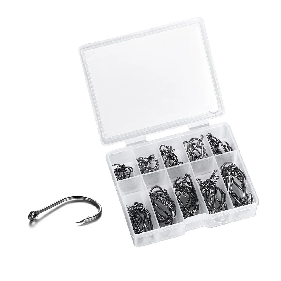 BLUEBROOK-anzuelos de mar de 50 piezas/100 piezas, caja de pesca con mosca, plantilla de púas, carpa, accesorios de aparejos grandes