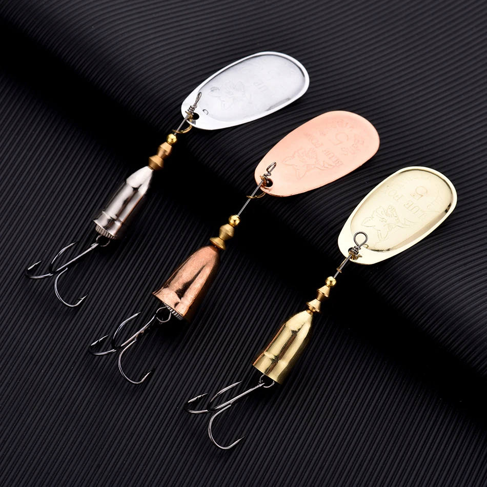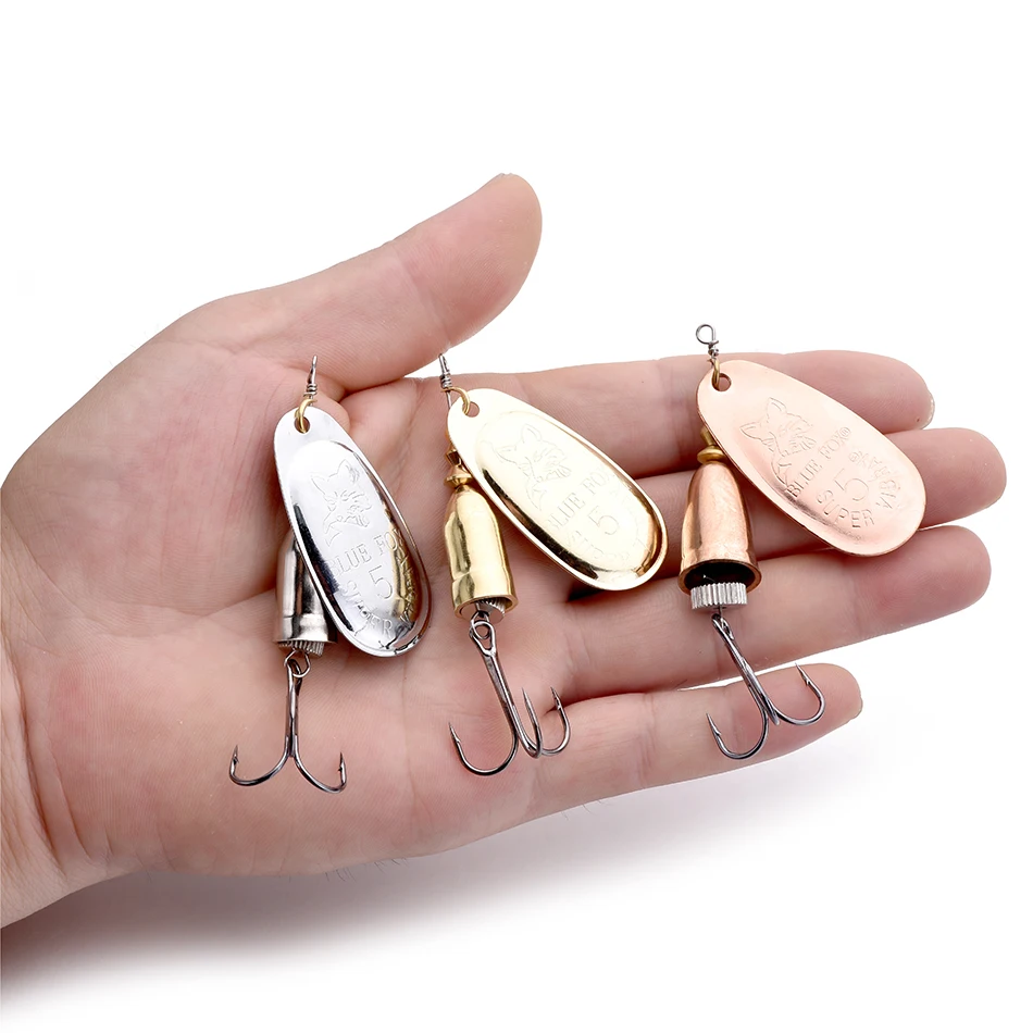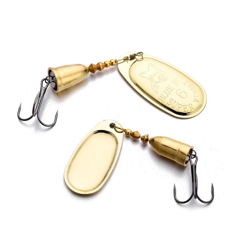 BLUEBROOK-señuelo giratorio de Metal, cebo duro de latón Artificial, anzuelo triple, aparejos de pesca para Lucio, 4g, 6g, 8g, 10g, 16g, 19g
