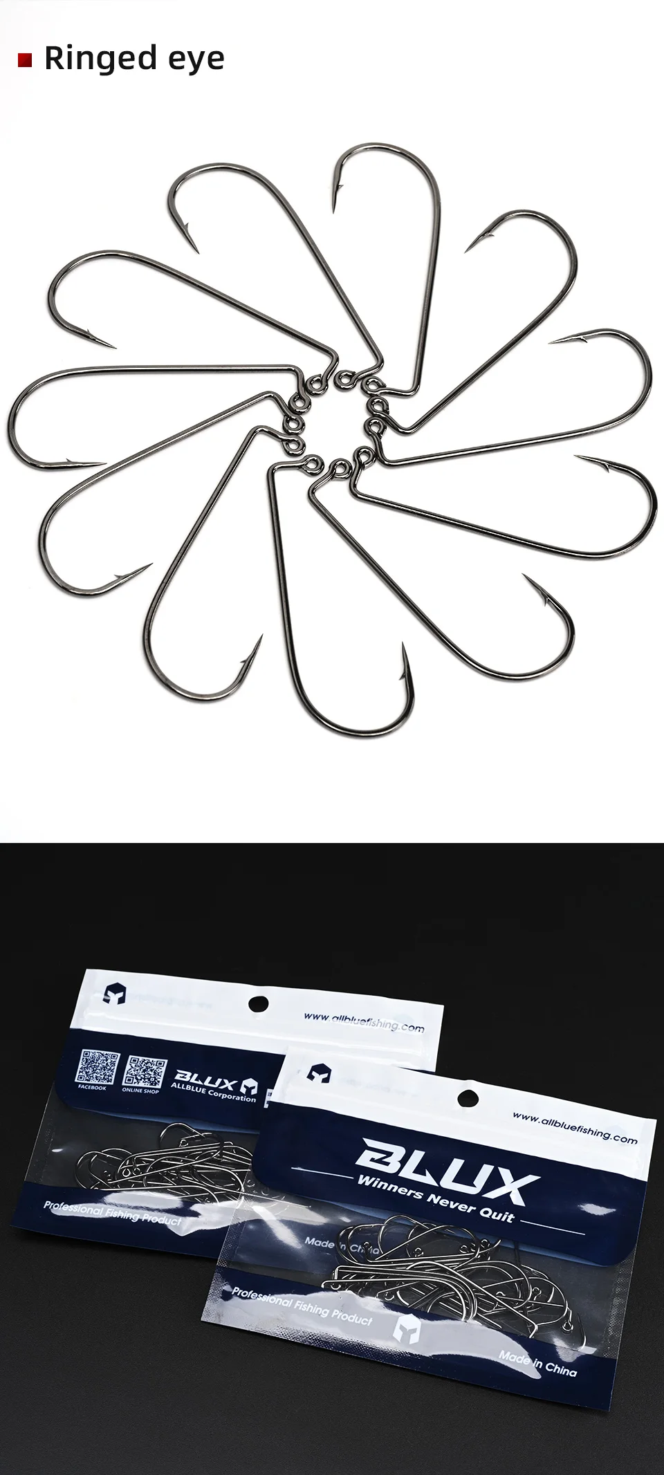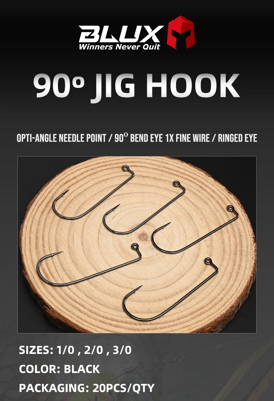BLUX 20 piezas anzuelo de 90o 2/0 3/0 cabezales de anzuelo de ojo anillado equipo de pesca de agua dulce y salada