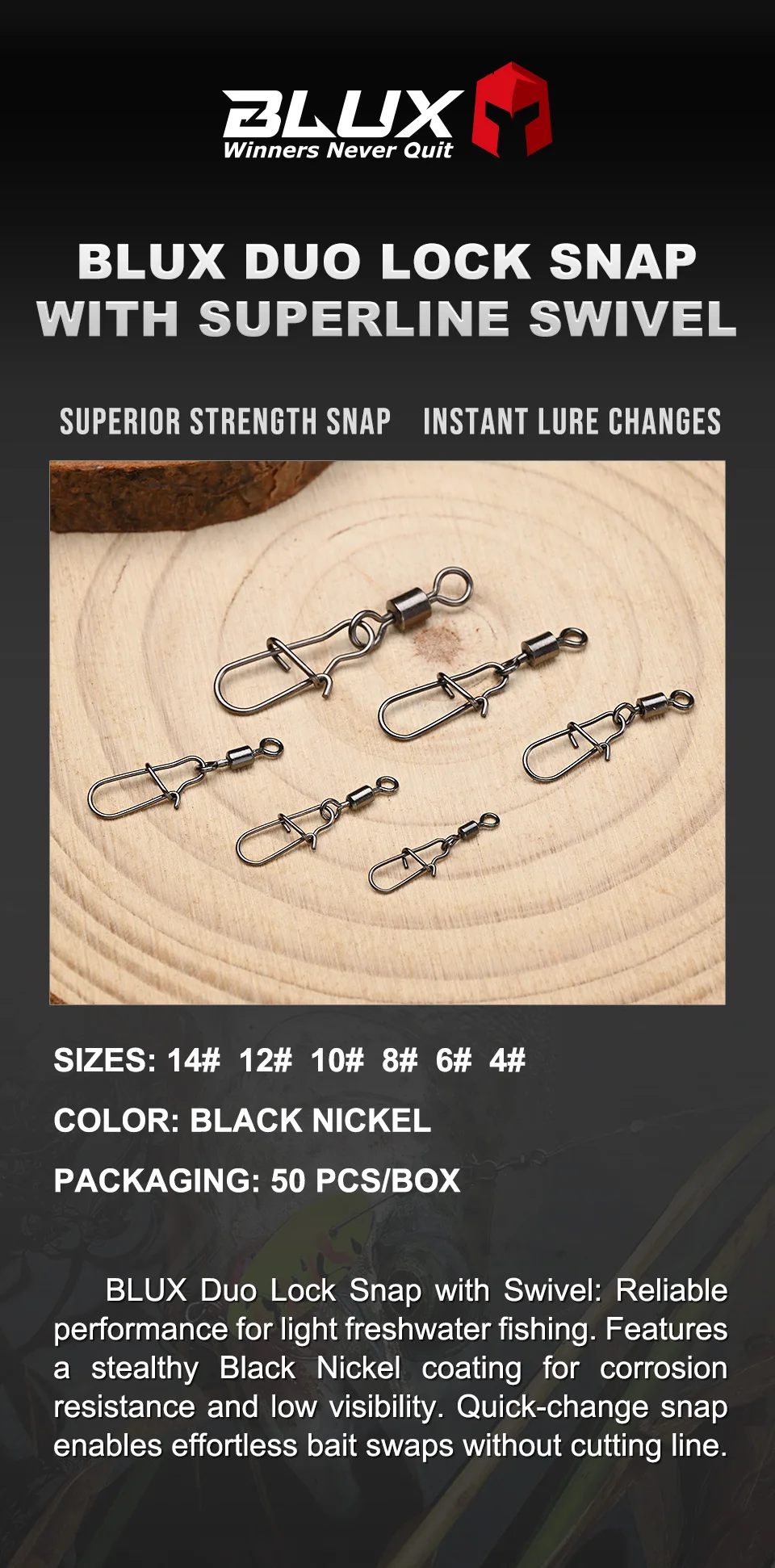 BLUX 50 Uds bloqueo a presión con superlínea giratoria de acero inoxidable señuelo bucle cambio rápido Clips de pesca Terminal de conector de velocidad rápida