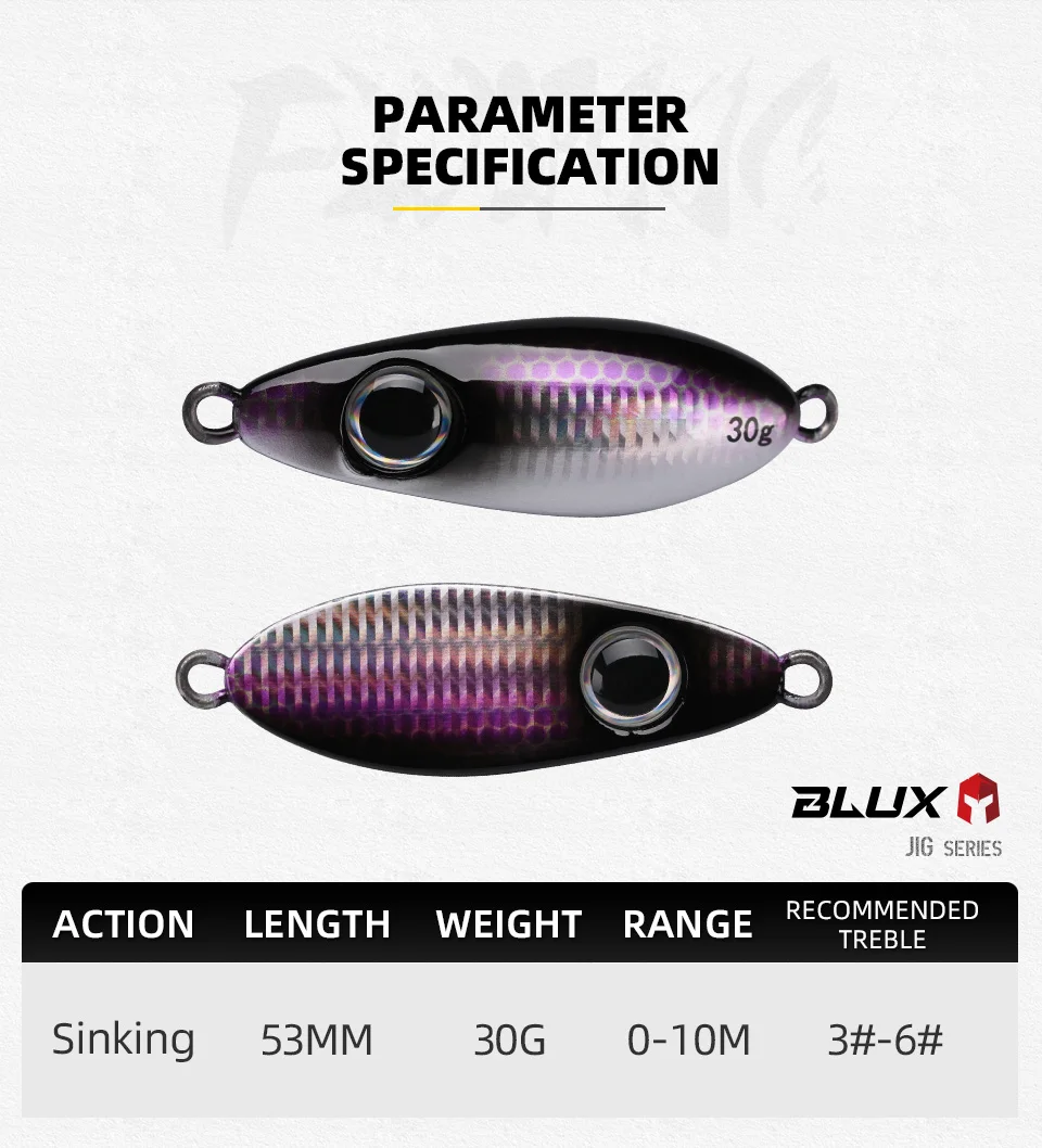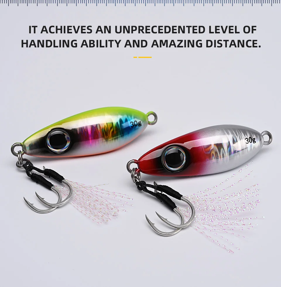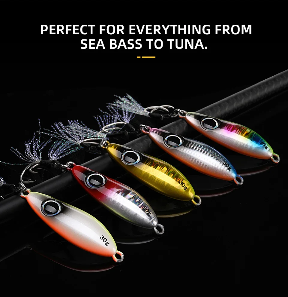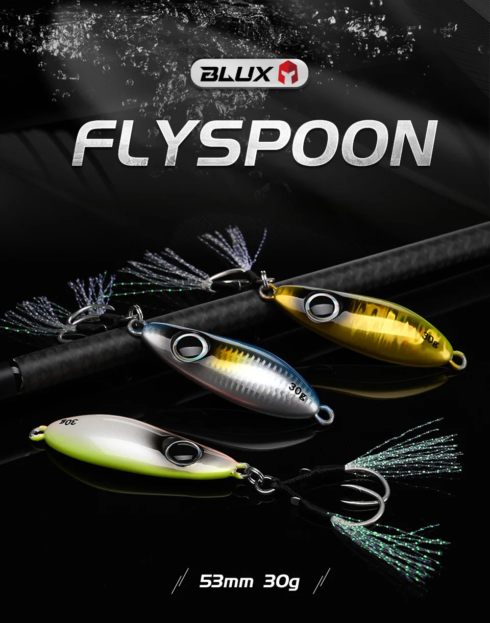 BLUX-cuchara tipo anzuelo de Metal, señuelo de pesca con cuchara, 30G, cebo Artificial, Shore, Jigging lento duro, fundición larga, lubina, atún, aparejos de agua salada