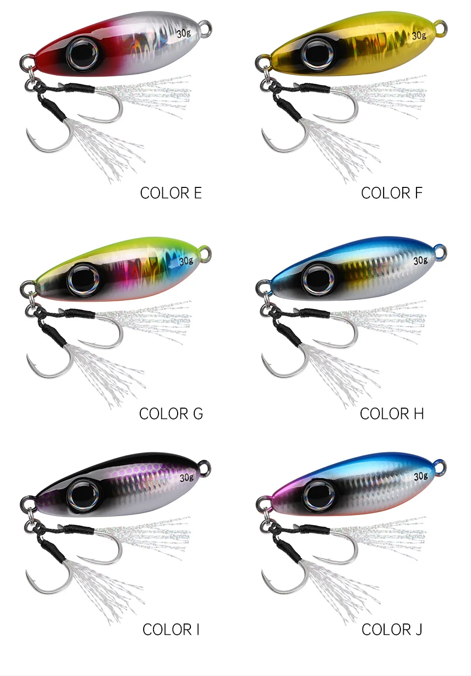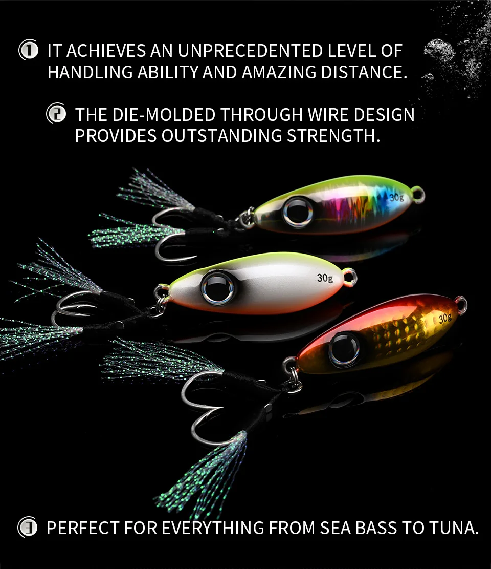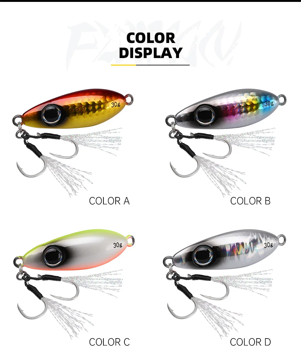 BLUX-cuchara tipo anzuelo de Metal, señuelo de pesca con cuchara, 30G, cebo Artificial, Shore, Jigging lento duro, fundición larga, lubina, atún, aparejos de agua salada
