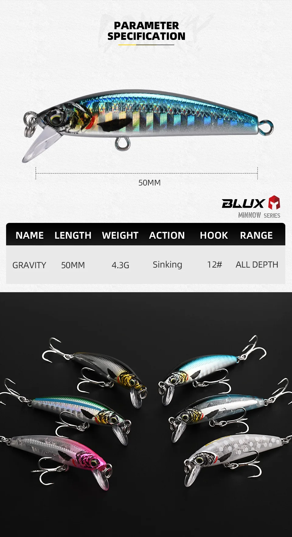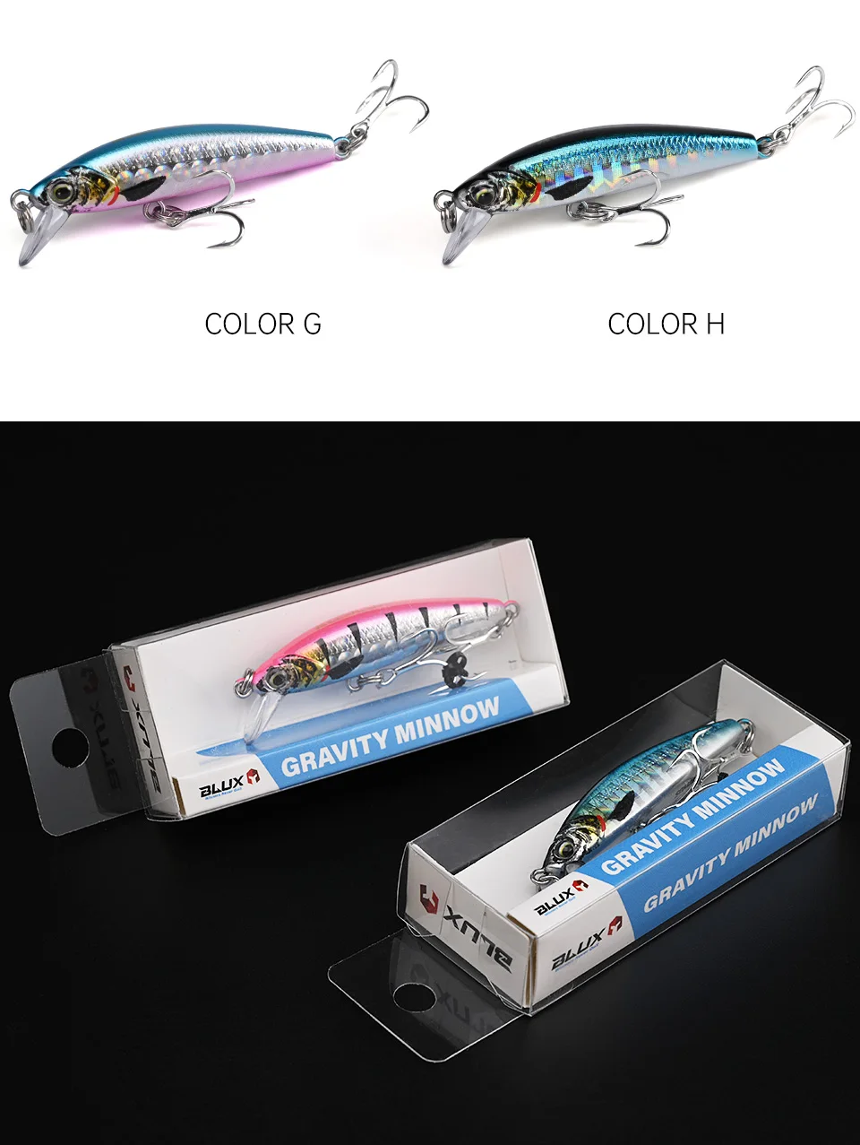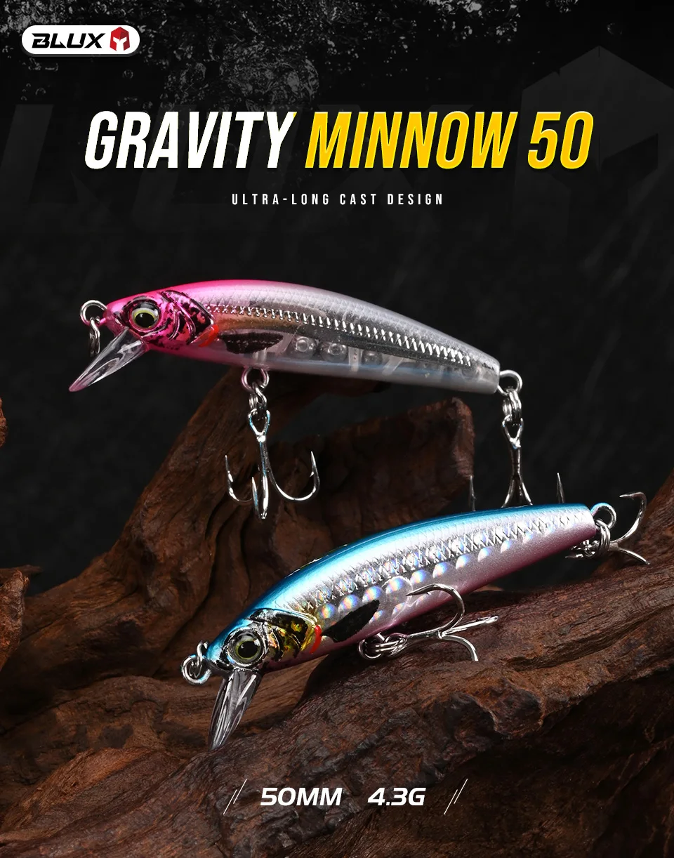 BLUX Gravity Minnow 50mm 4,3g señuelo de pesca brillante de fundición larga Wobbler agua dulce agua salada lubina Pike cebo de plástico duro