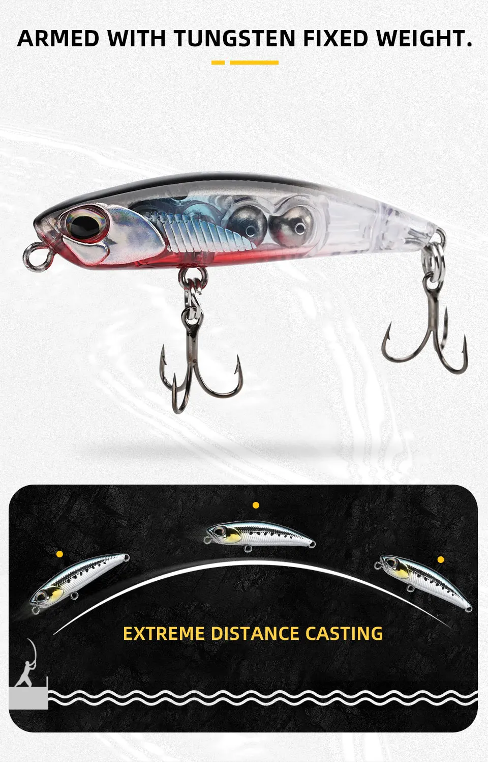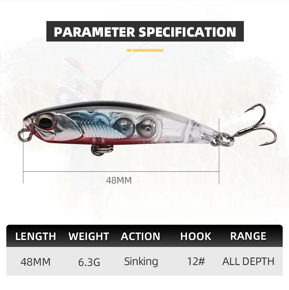 BLUX LURKER 48 señuelo de pesca con lápiz que se hunde palo pesado 48MM 6,3G agua salada sin labios Minnow tungsteno Wobbler cebo de plástico duro