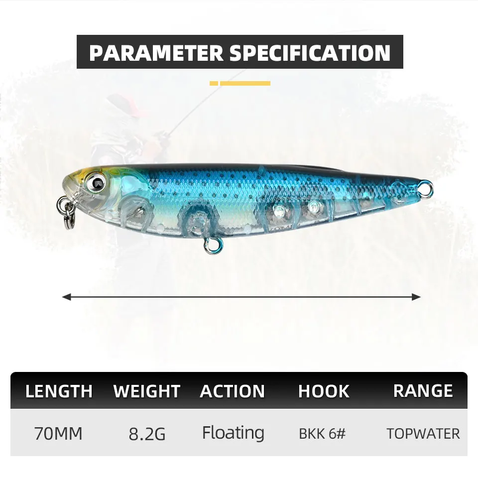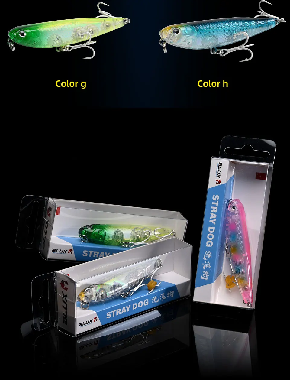 BLUX-señuelo de pesca Artificial para agua salada, andador de superficie, 70MM, 8,2g