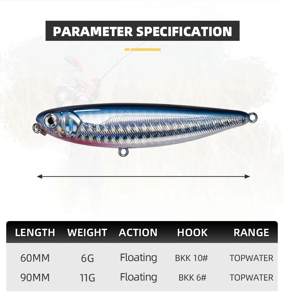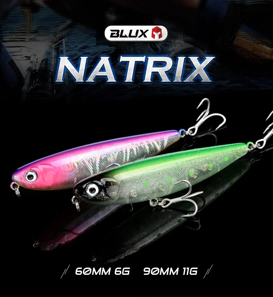 BLUX-Señuelo de pesca NATRIX, cebo duro de lubina artificial de longitud 60MM y 90 MM, andador de superficie