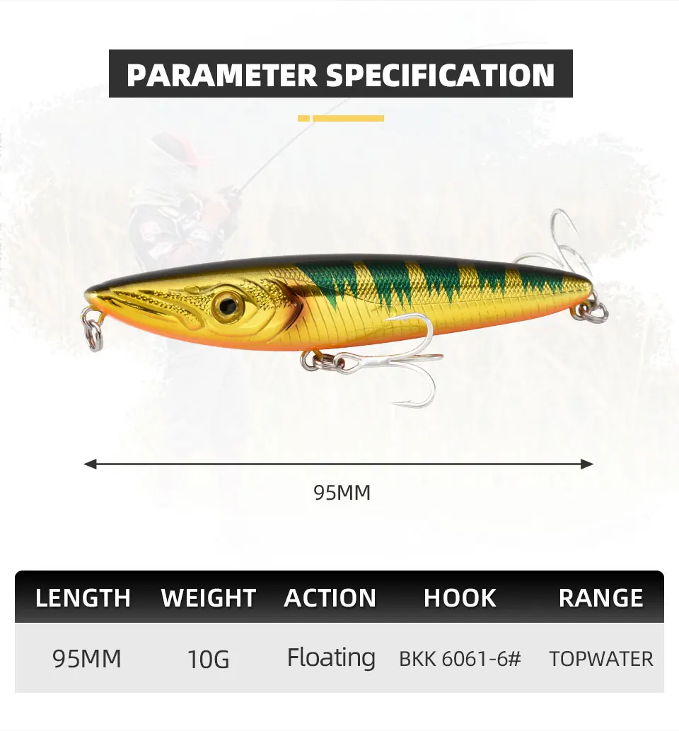 BLUX-señuelo de pesca de superficie DESPOT 95, andador de lubina de plástico duro, superficie de 95mm y 10g