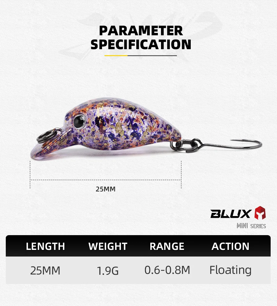 BLUX-señuelo de pesca de trucha Wobbler, cebo duro Artificial de 1,9g y 25mm flotante, Crankbait