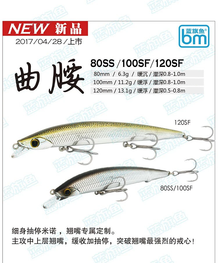 BM Quyao-señuelo de pesca de pececillos, cebo duro falso Wobbler Artificial de hundimiento lento y flotante, 80/100/120mm de tiro largo, 6,3g/11,2g/13,1g