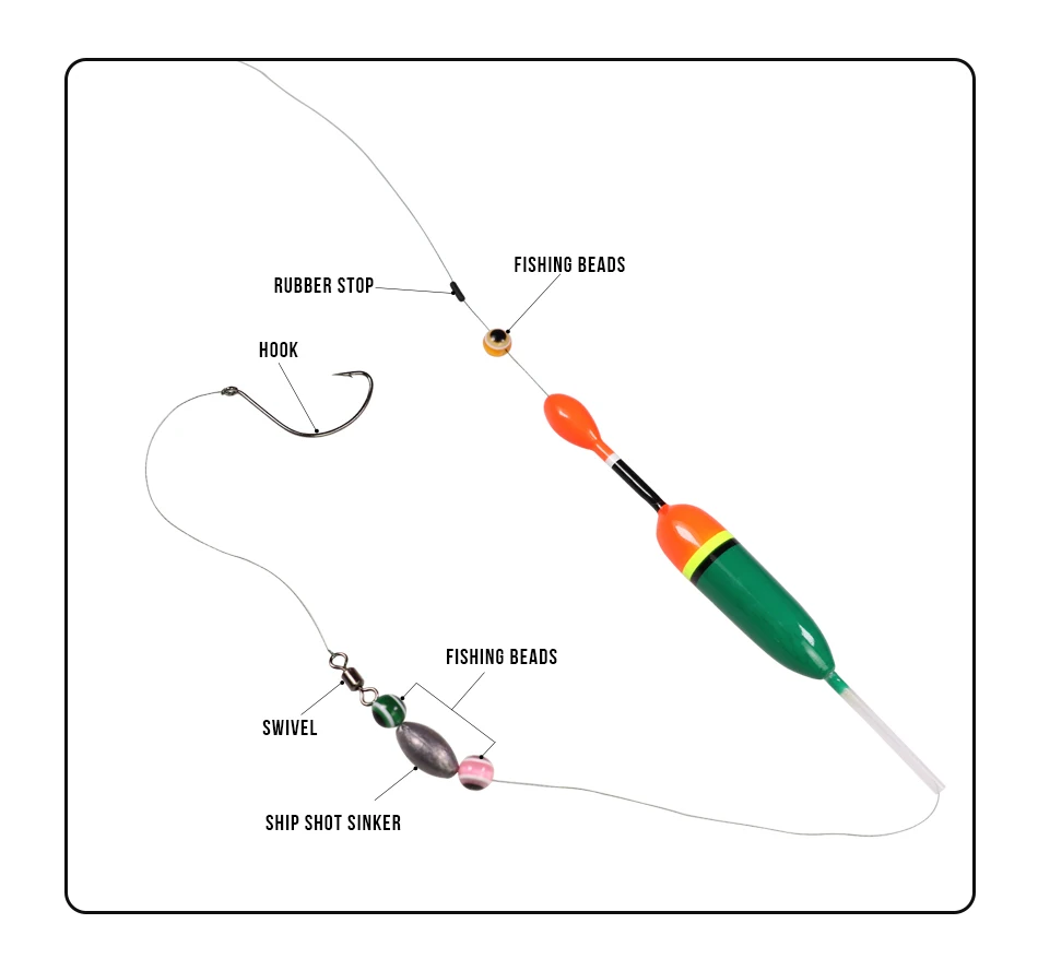 1. Excelentes bobbers antideslizantes: el orificio amigable con la línea permite que la línea se deslice rápidamente a través del flotador, las líneas de pesca pasan desde los bobbers antideslizantes de abajo hacia arriba en segundos.Los flotadores deslizantes se deslizan libremente hacia arriba y hacia abajo de su hilo de pescar.Interior vacío que permite que la línea se caiga de manera confiable a través del flotador.