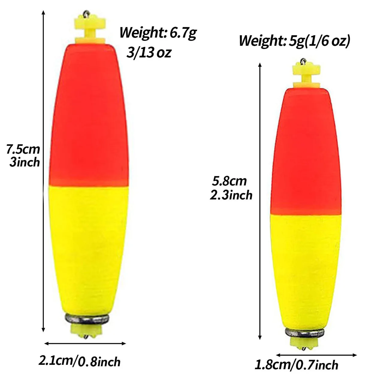 1. Bobbers clásicos: los flotadores de espuma ponderados son flotadores de espuma de calidad excelentes para crappie y otros panfish, así como para una variedad de otros peces.
