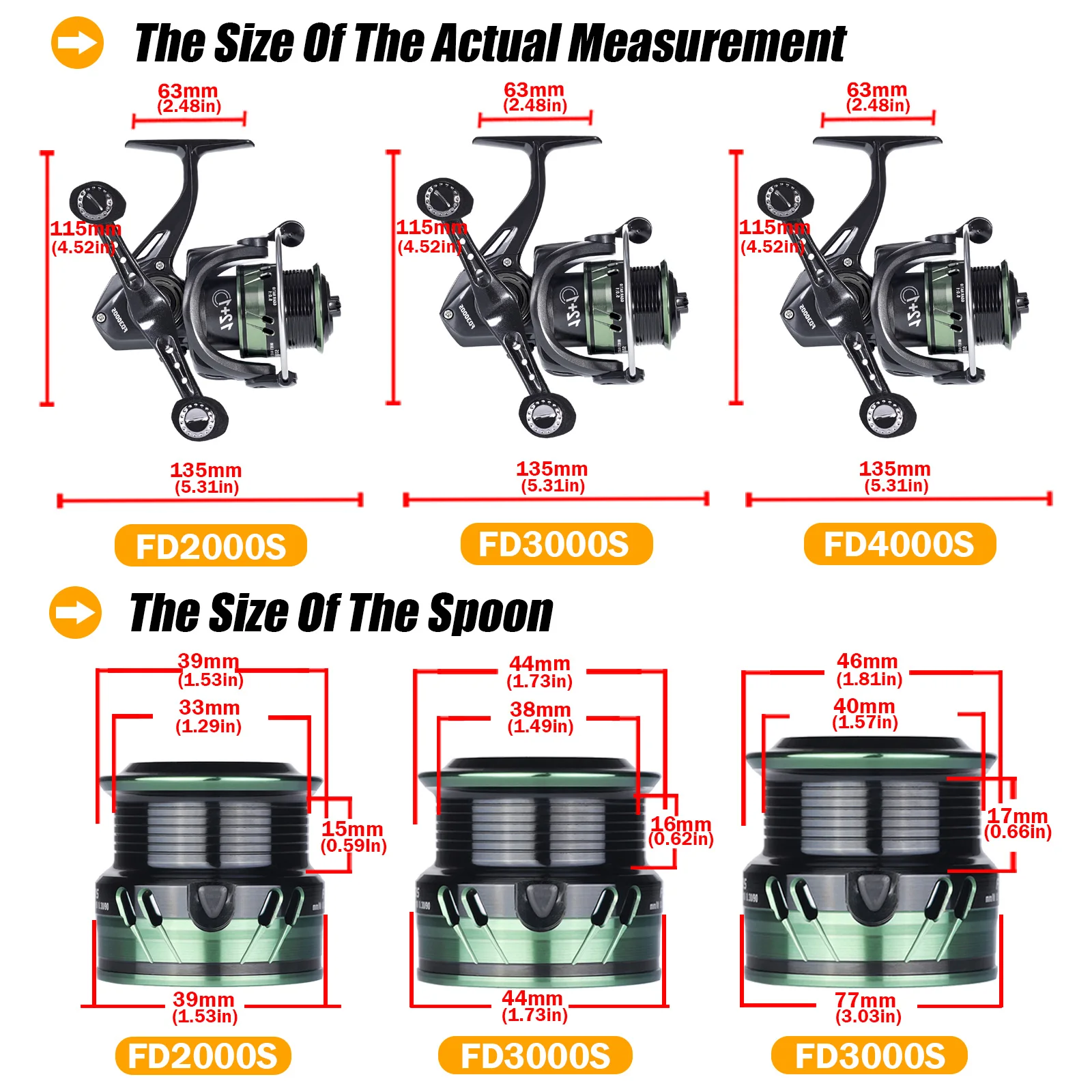 FD2000 DEEP SPOOL | Peso: 212g | Ratio: 5,0: 1 | Arrastre máximo: 8kg | Capacidad de Línea: 00,18/200 0,20/160 0,25/120