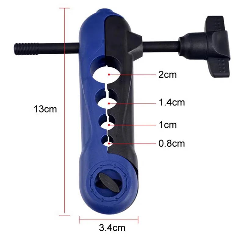 4.Se adapta a varios tamaños de varilla, el diámetro de 4 orificios es de 0,7 cm, 0,98 cm, 1,33 cm, 1,88 cm.