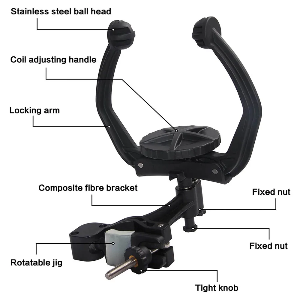5. La abrazadera de la bobina puede sujetar la varilla en blanco de 0,2-1,1 pulgadas de diámetro. Use la superficie CONVEXA de la palanca de bloqueo si su caña de pescar en blanco tiene un diámetro de 0,2-0,6 pulgadas/5-15mm. Utilice la superficie CÓNCAVA, su varilla en bruto es de 0,6-1,1 pulgadas/15-28mm de diámetro.