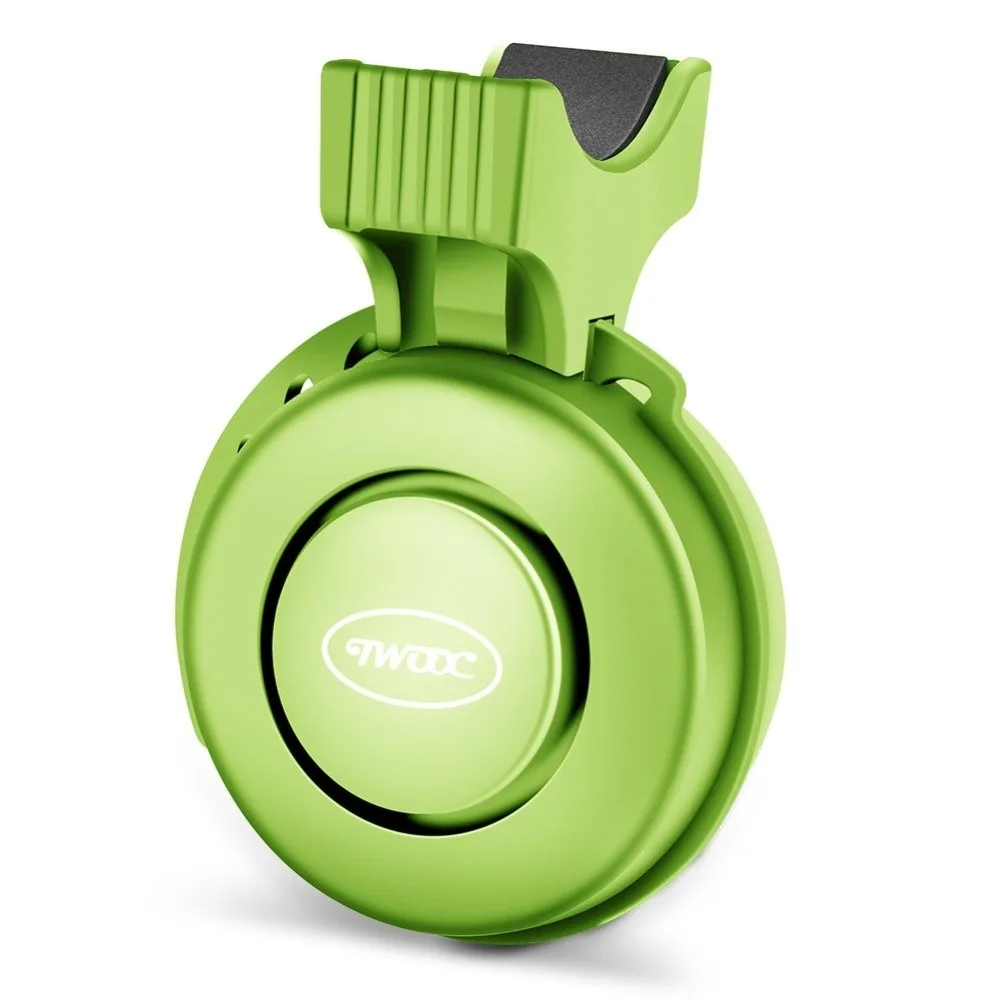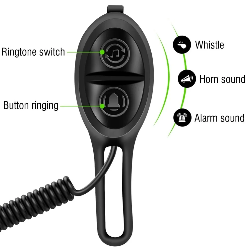 Multiple Sound Modes and Easy Mounting: One button cycles through three sound types such as whistle, horn, and alarm, and another button is used to ring. Installs with a stable fixing band on 22-31.8 mm handlebars. Available in black, pink, red, green, and blue. Material: ABS + PC