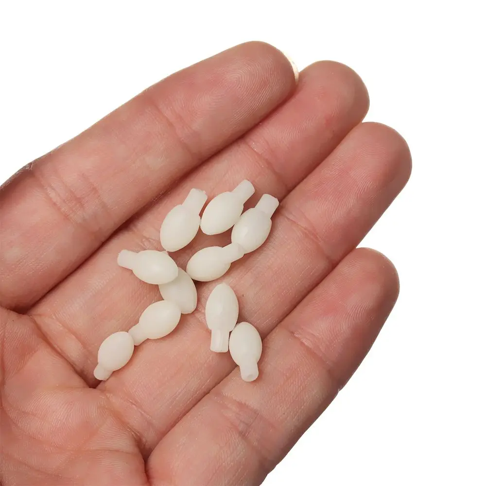 Tipo de producto: frijoles brillantes con cola flotante de pesca Demensión del artículo: Diámetro 1,6 mm-2,1 mm Alto brillo en flotadores luminosos, fácil y cómodo de usar. Está hecho de plástico blando de alta calidad. Es transparente y nada deslumbrante. Paquete incluido: Bola flotante de espuma de 10 piezas.