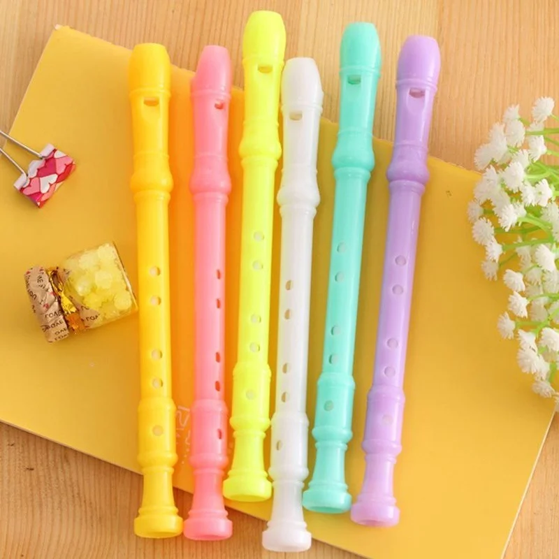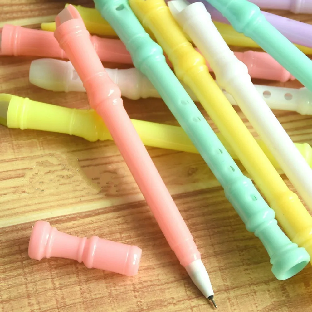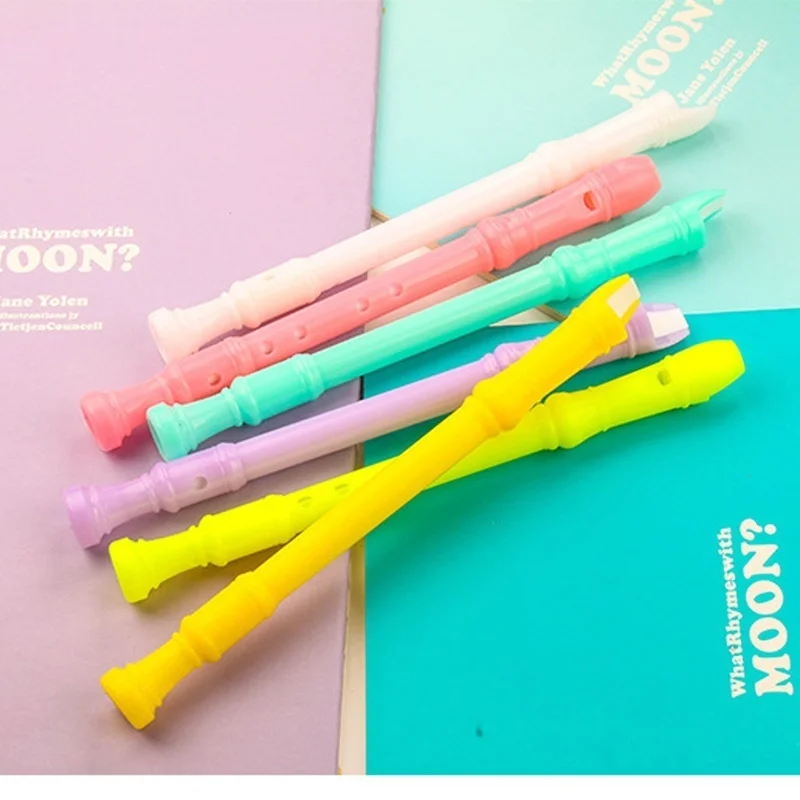 Bolígrafos de Gel con forma de clarinete, suministros de escritura de flauta de dibujos animados creativos, Color caramelo, 4 piezas, para estudiantes