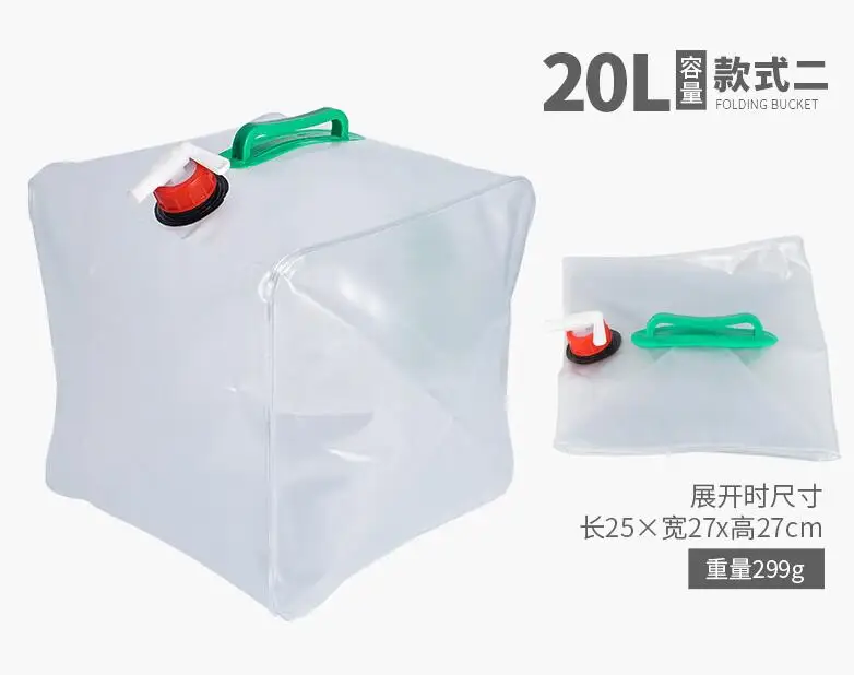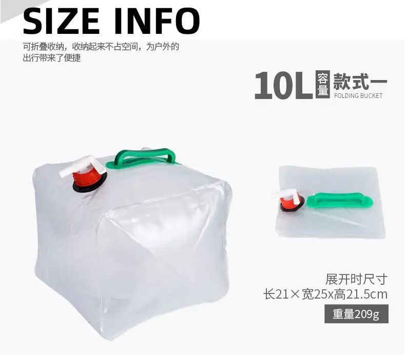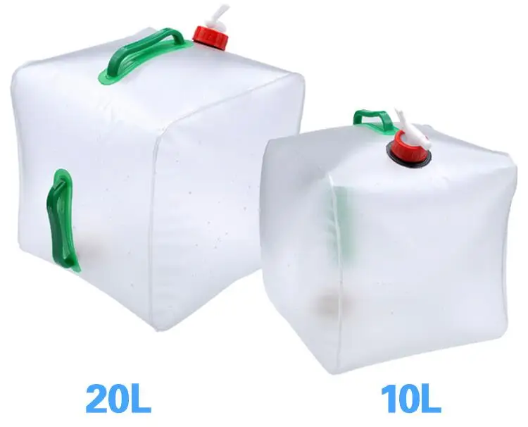 Bolsa de agua plegable de gran capacidad, contenedor de almacenamiento, portador de agua, suministros de equipo de camping, 10L/20L