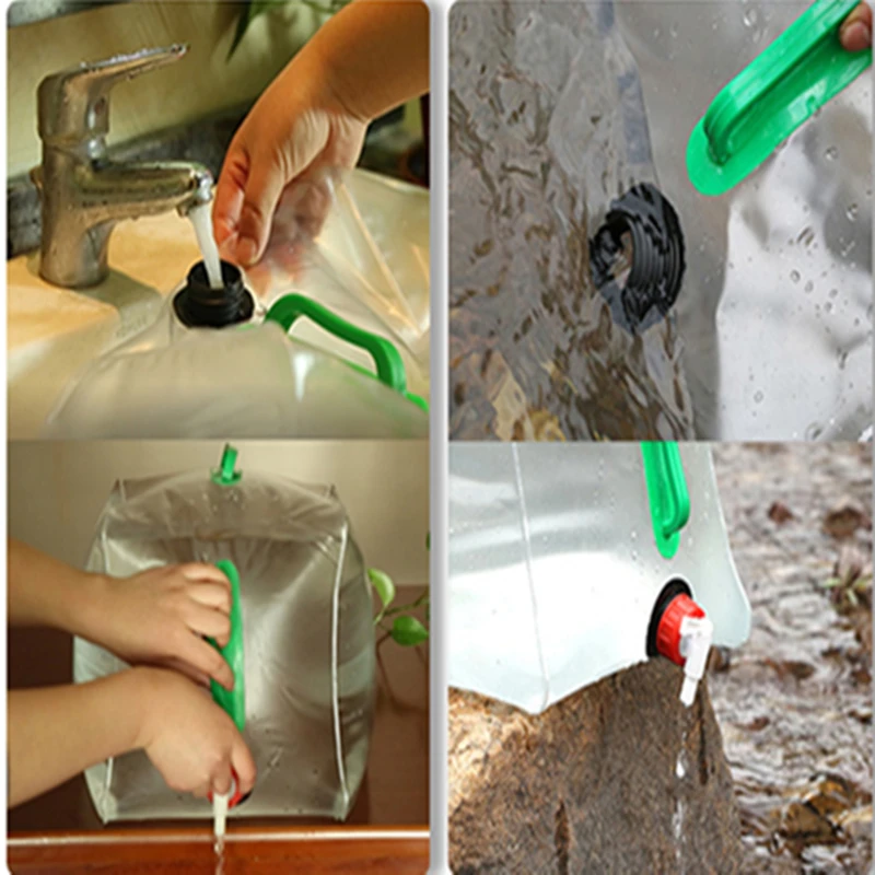 Bolsa de agua plegable con grifo, Cubo de coche para exteriores, bolsa de almacenamiento de agua de gran capacidad de 20 litros