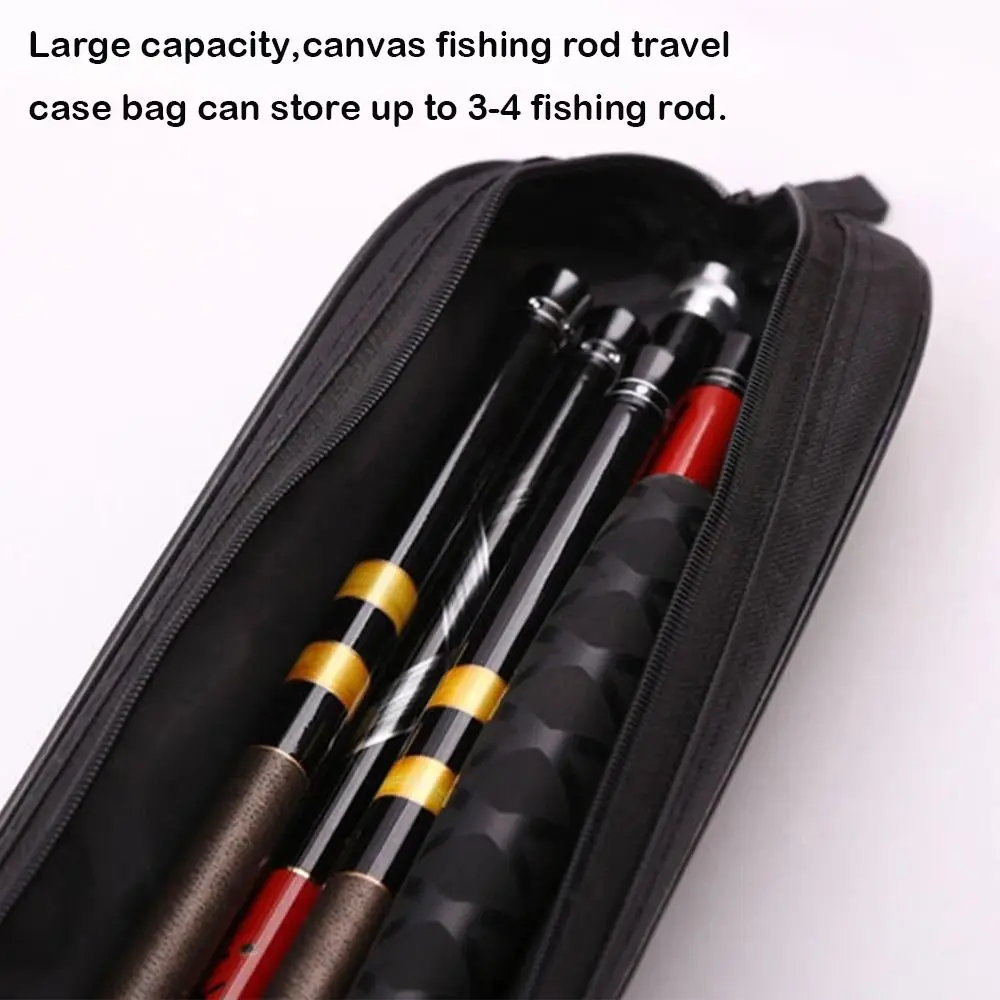 Fishing Rod Bag is made of high quality canvas material, sturdy and tear-resistant, waterproof, long service life. Fishing rod carrier case with adjustable and widend shoulder strap,lightweight and convenient to carry. Fishing rod storage tube is also foldable to be stored in your backpack and ready to go. Large capacity,canvas fishing rod travel case bag can store up to 3-4 fishing rod. Zipper design for easy access to essentials fishing gear. Designed for protecting and organizing your rods. Specification: Name:Fishing Rod Bag Storage Bag Color:black Material: canvas Width:6cm/2.36in Length:120cm;125cm Package Includes:1 Piece Fishing Pole Storage Bag