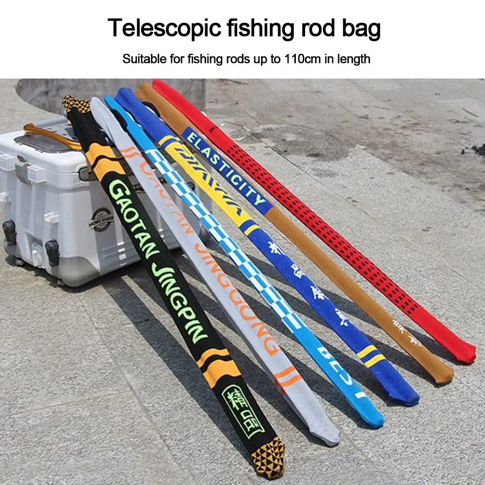 Nuevo y de alta calidad Nombre: Bolsa de caña de pescar Bolsa de almacenamiento Color: como se muestra Material: algodón Longitud: 65cm, longitud elástica: 110cm; ancho: adecuado para cañas de pescar de hasta 110cm de longitud El paquete incluye: 1 bolsa para cañas de pescar