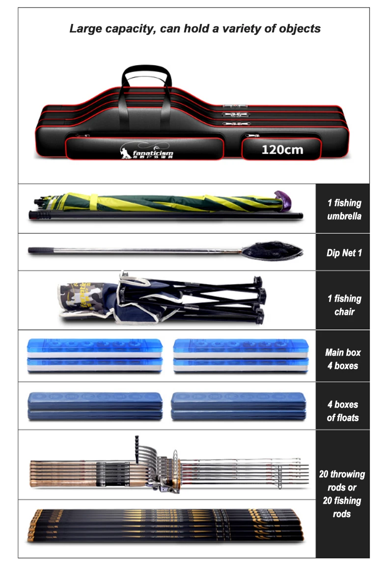 -Gran capacidad: puede almacenar peces, cebo de pescado, papel de pez, etc.