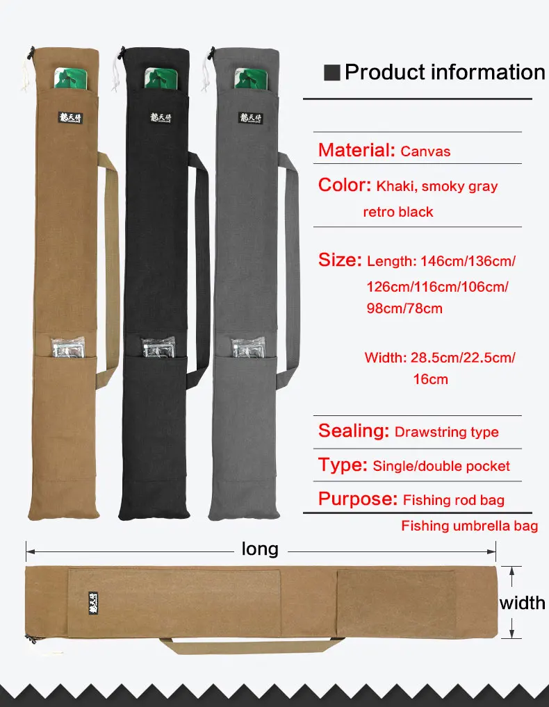 Bolsa de almacenamiento de caña de pescar portátil de 146cm, aparejo de tubo de lona, herramienta de pesca de espesor, organizador de transporte, accesorios, bolso de hombro X508G