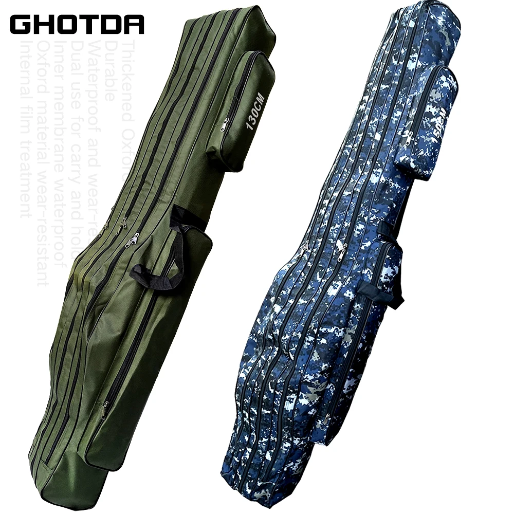 Características del producto Hecho de lona, resistente al agua y al desgaste, muy duradero. Contiene dos o tres compartimentos principales con Bolsas laterales. Gran capacidad y correas ajustables, conveniente y portátil. Maravilloso compañero para pescadores. Especificaciones del producto Material: lienzo 1280D Color: verde/azul (opcional) Capa: dos/tres (opcional) Longitud: 110cm / 120cm / 130cm / 150cm (opcional) Lista de paquetes 1 ud. * bolsa de pesca