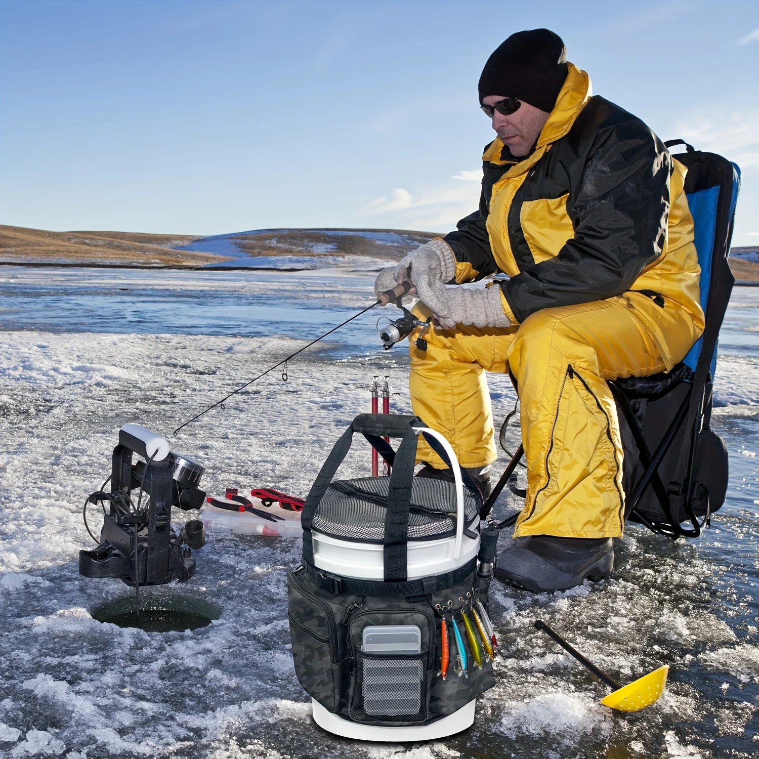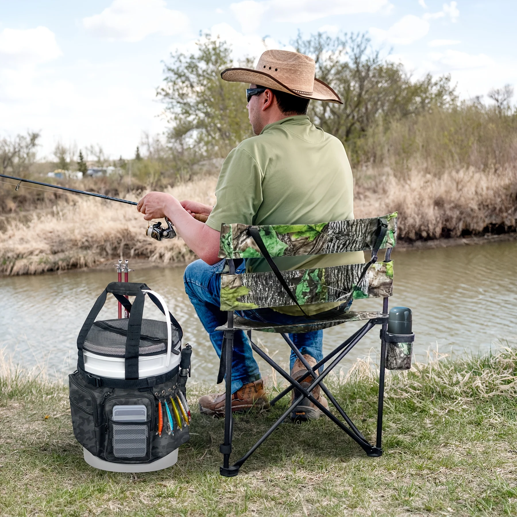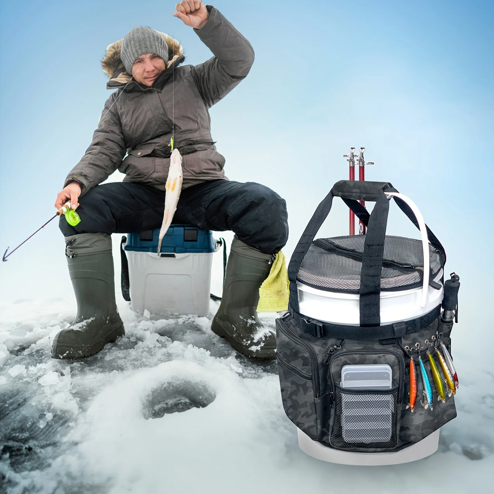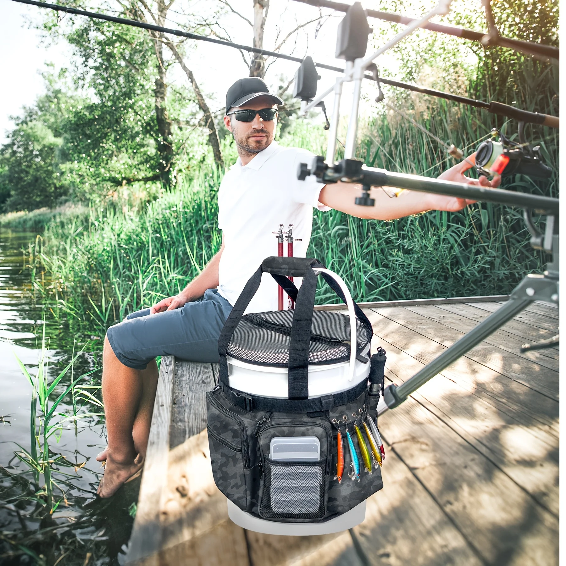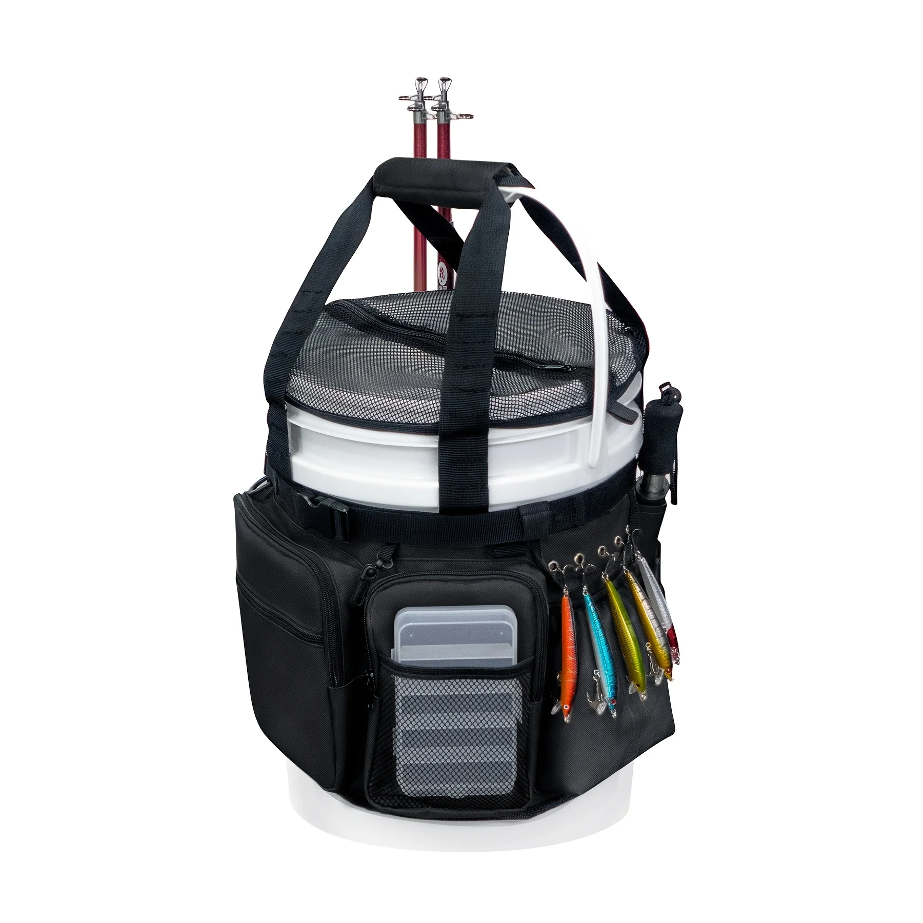 Bolsa de almacenamiento de cubo de pesca multifuncional, estante para caña de pescar, accesorios de equipo de pesca de múltiples bolsillos, suministros de soporte