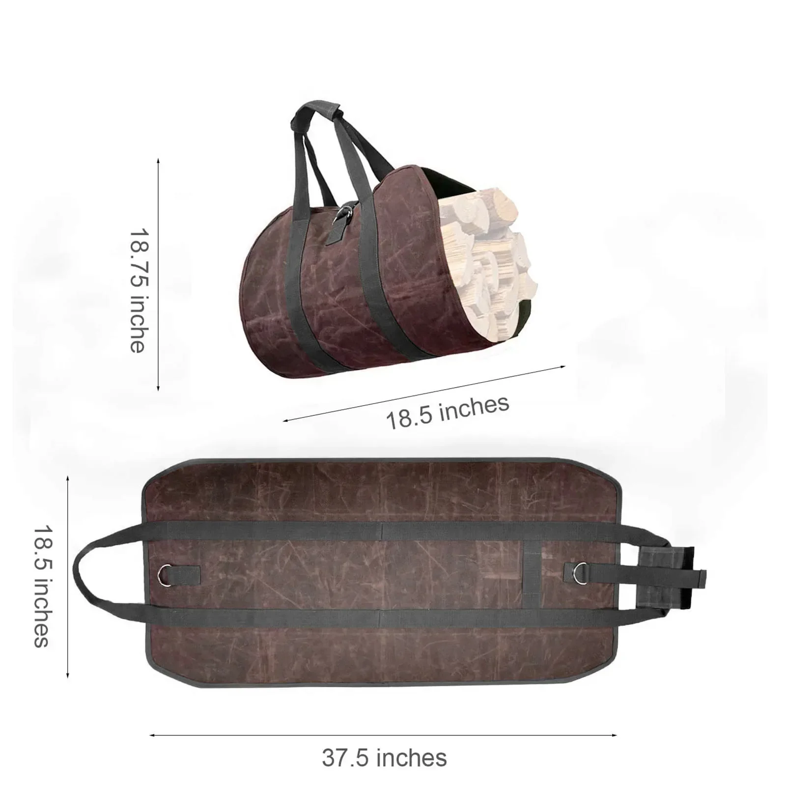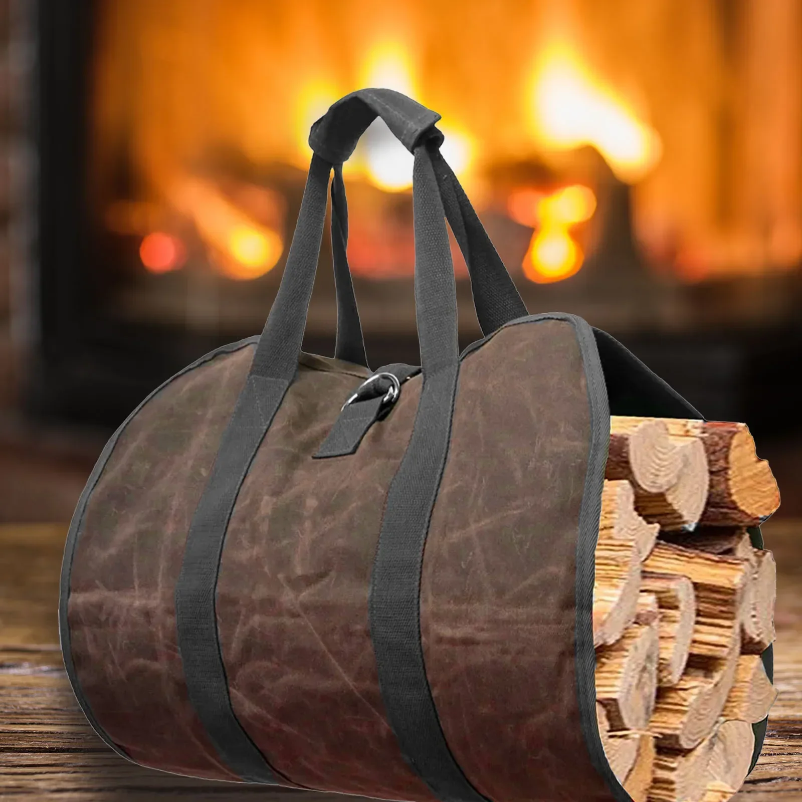 Bolsa de transporte de leña de lona de gran tamaño, bolsos de madera para portador de troncos, bolsa de almacenamiento de leña para chimenea, suministros
